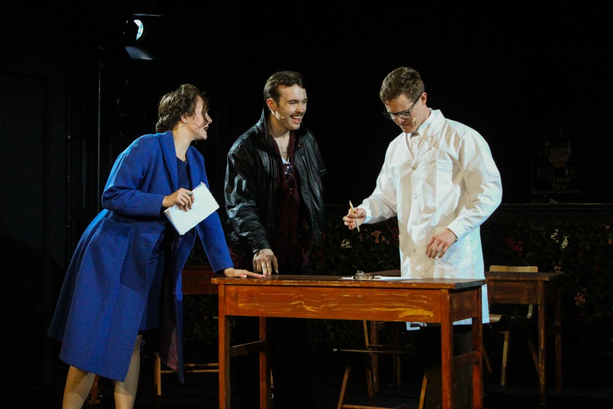 An original electric pop-rock score drives the action, brimming with energy and sincerity, yet never afraid of a healthy dose of cheese. The production looks smart and cohesive: neat period costumes, kitsch garden fences and office furniture, all arranged with precision to create a stylishly retro world. The compact studio space is used resourcefully, with the 11-strong cast slipping quickly between gardens, pharmacies and the bustling newsroom of the local paper, ensuring the action always feels alive.