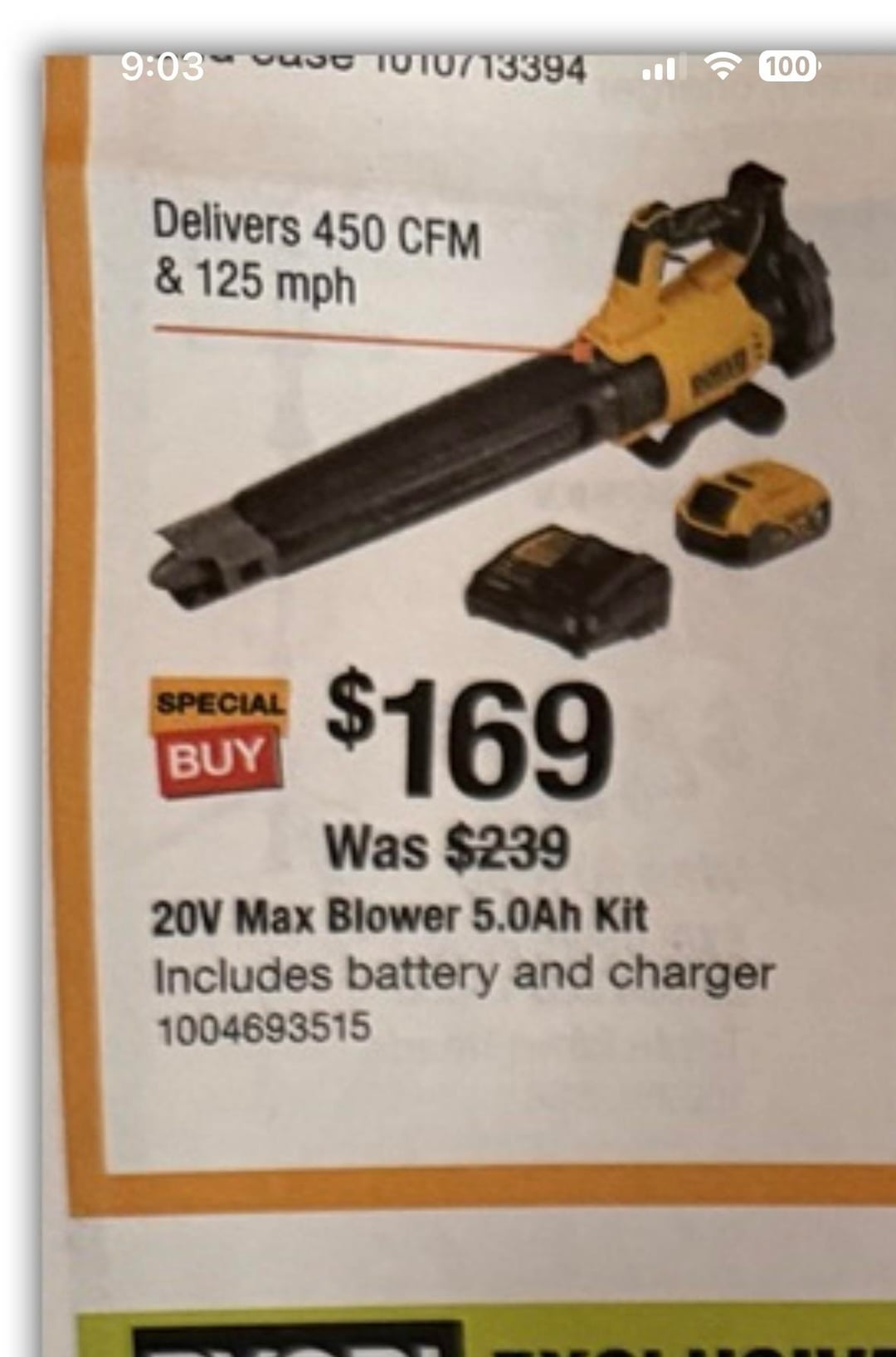 That Ryobi blower and battery is a good deal. Those 40v batteries are pretty expensive by themselves. I have an 18v blower that’s fine most of the time, but not stronger enough for wet leaves on the grass lawn. What’s important to compare is the CFM, and the Ryobi’s the highest at the lowest price.