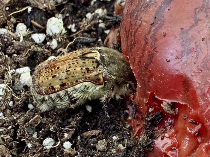 What Kelowna gardener Jen Frost found in her garden eating a tomato last week was a bumble flower beetle.