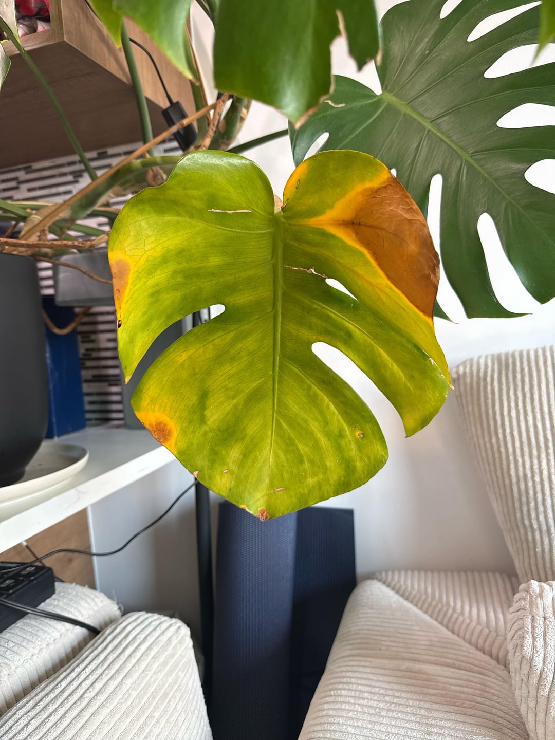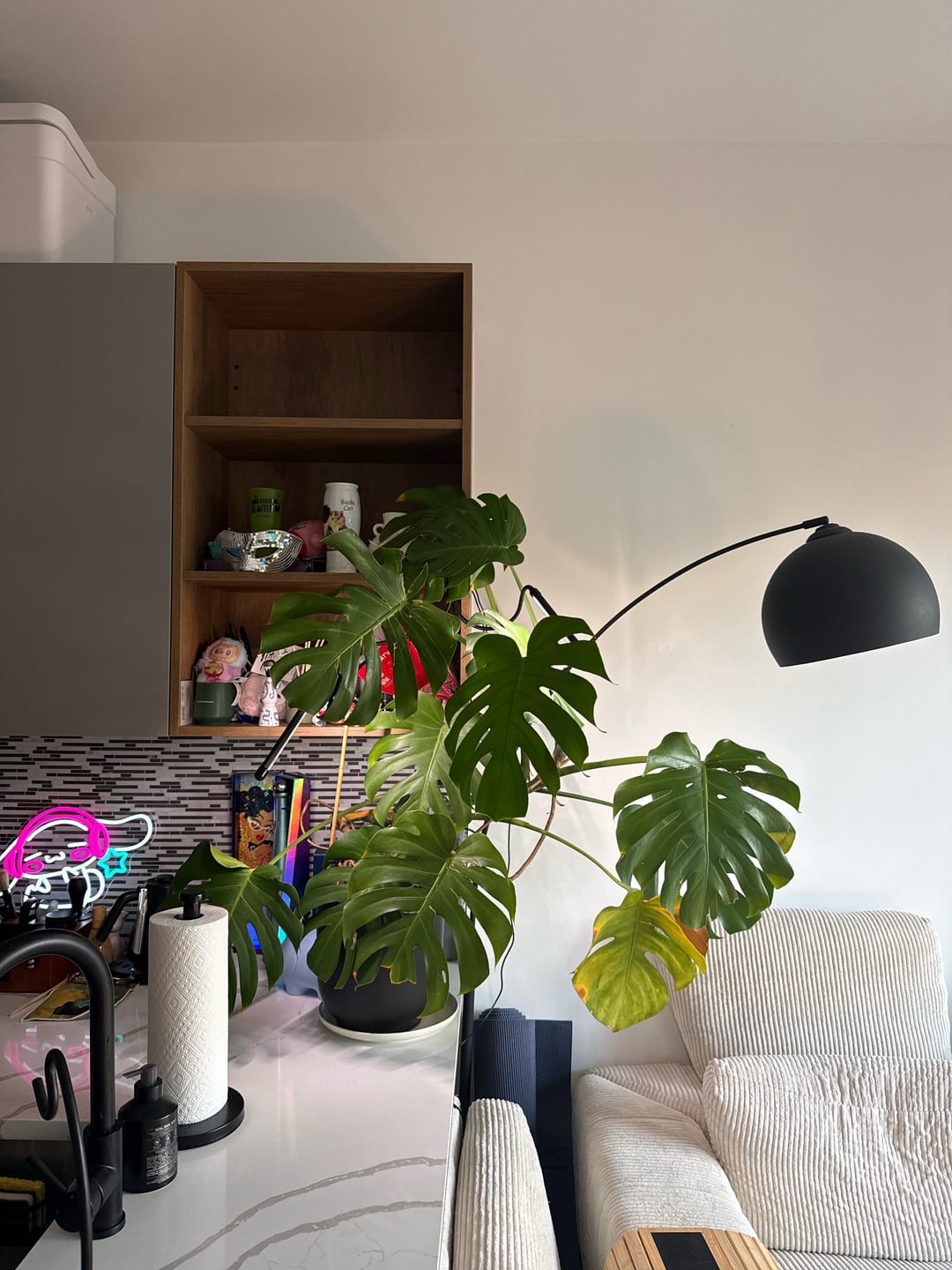 – Pot has drainage. Haven’t set a firm watering frequency, just going based on soil meter and Planta