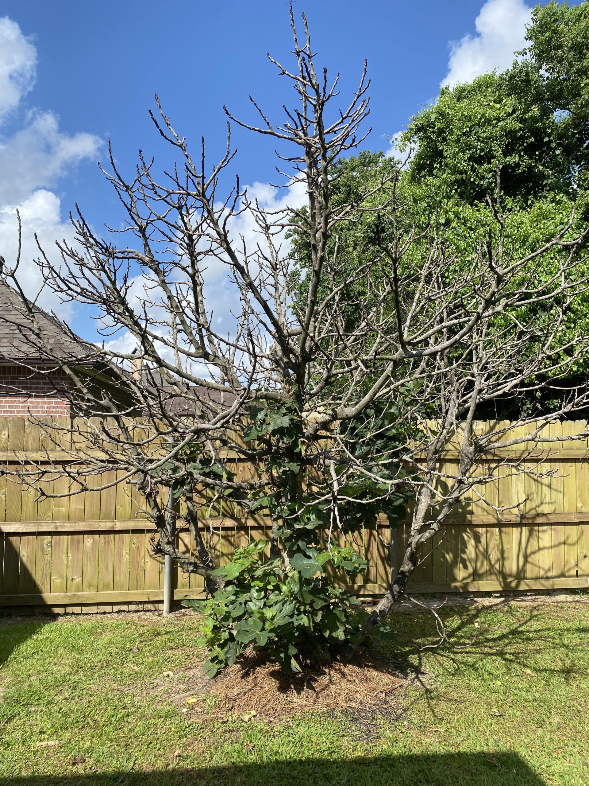 Chainsaw. Cut all of the dead and let the strongest sucker at the bottom take it’s place