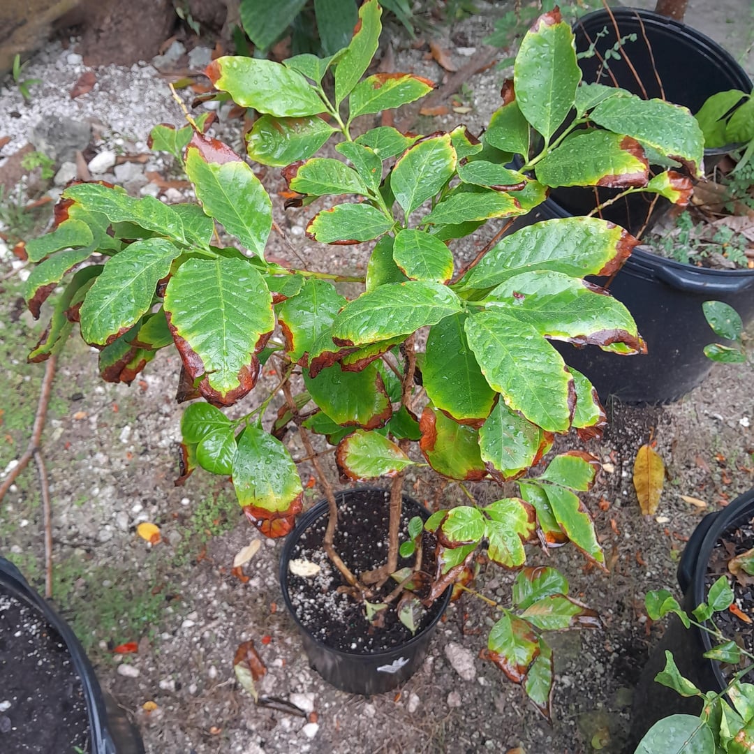 wet feet, overwet soil, plant needs potassium and the start of nitrogen , feed feed feed
