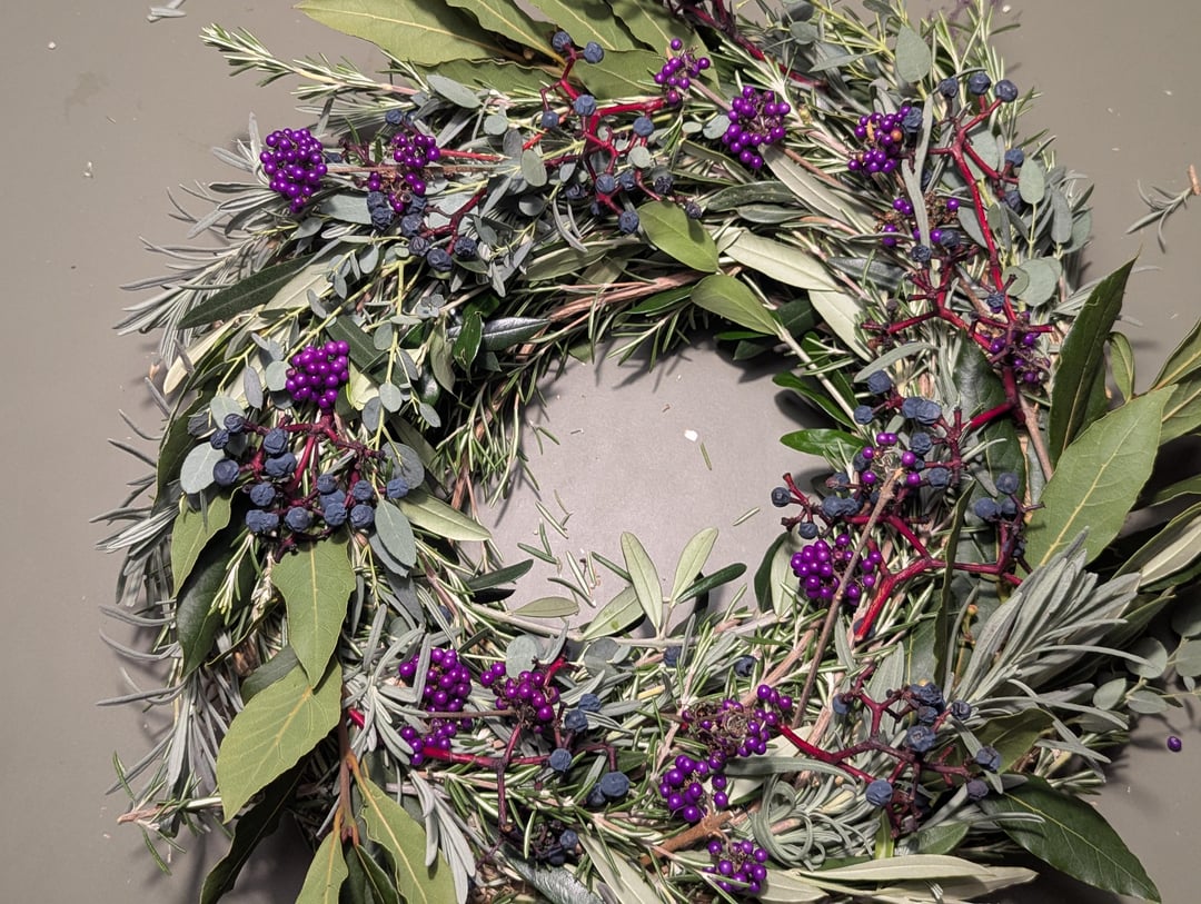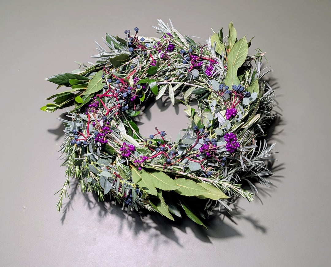 Purple berries might be beauty berries? They don’t grow where I live so I’m no expert on them but they are the right colour haha. Must smell amazing.