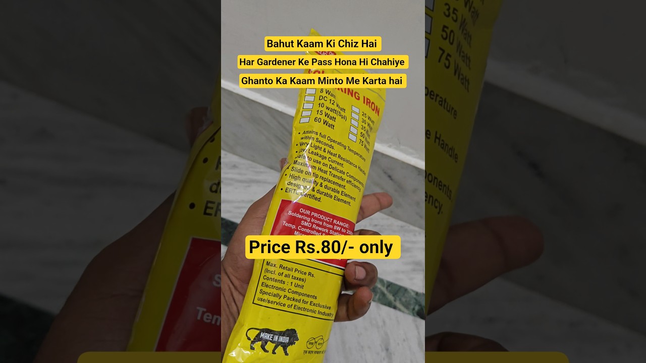 हेलो दोस्तों, कैसे हैं आप सब? यह है शोल्डरिंग आयरन और इसे मैंने खरीदा है ₹80 में अपने लोकल मार्केट से। आपके वहां कितने में मिलता है, यह कमेंट जरूर कीजिएगा और यह काम आता है प्लास्टिक के जो टब होते हैं जिसमें हम पौधे लगाते हैं उसमें बॉटम में होल करने के लिए। वैसे इससे पहले मैं एक स्क्रूड्राइवर को गर्म करके बॉटम में होल करता था जो बहुत प्रॉब्लम होती थी। कभी हाथ भी जल सकता था। तो तब जाकर मैंने यह शोल्डरिंग आयरन खरीदा और तब से बहुत ही काम आसान हो गया। बॉटम में होल भी आसानी से हो जाता है। होल भी प्रॉपर तरीके से होता है और बहुत यूजफुल है। आप भी इसे खरीद सकते हैं। ऑनलाइन भी मिलता है। वीडियो अगर पसंद आई हो तो एक लाइक जरूर कीजिएगा। धन्यवाद।