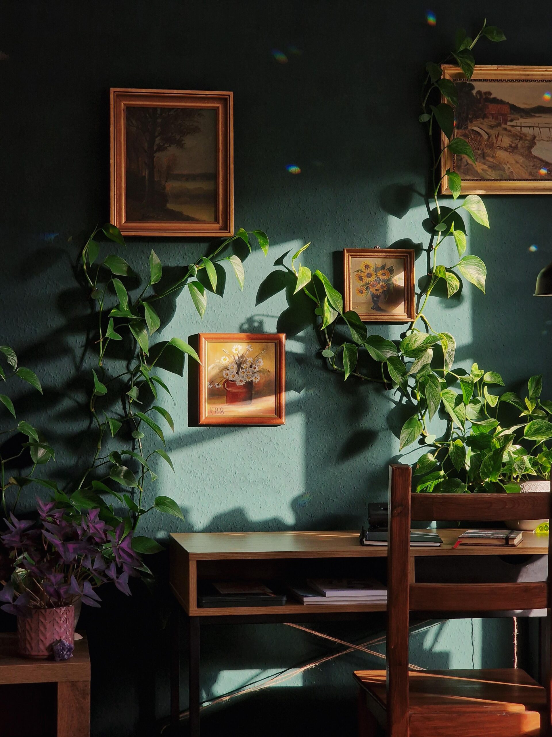 Pothos ‘Aurea’ and ‘Marble Queen’ on my wall
