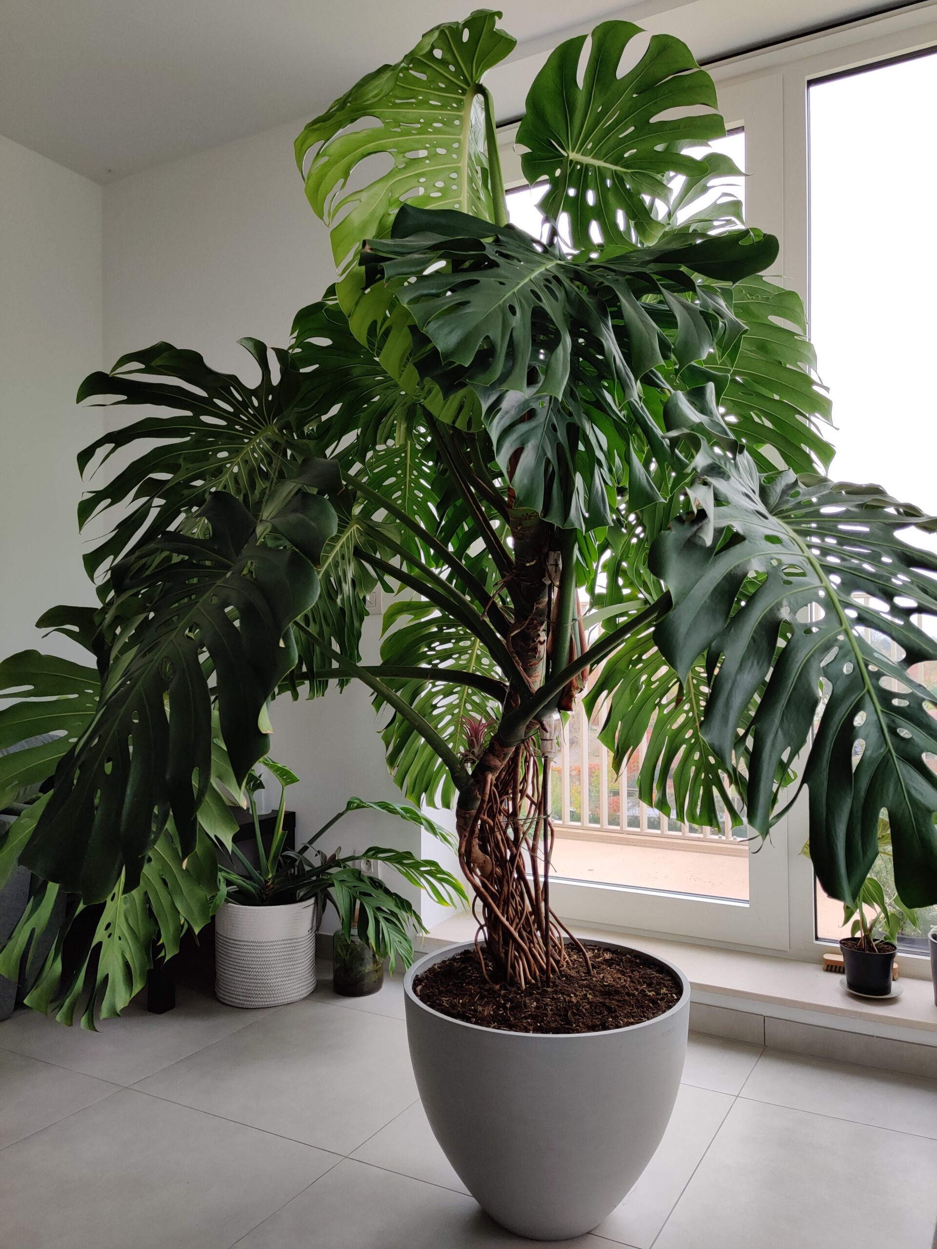 For those at home, this appears to be a prop of a very large monstera that was possibly on a moss pole or climbing up a tree… your leggy bald headed monstera WILL NOT look like that anytime soon just because you bought a coco coir pole!