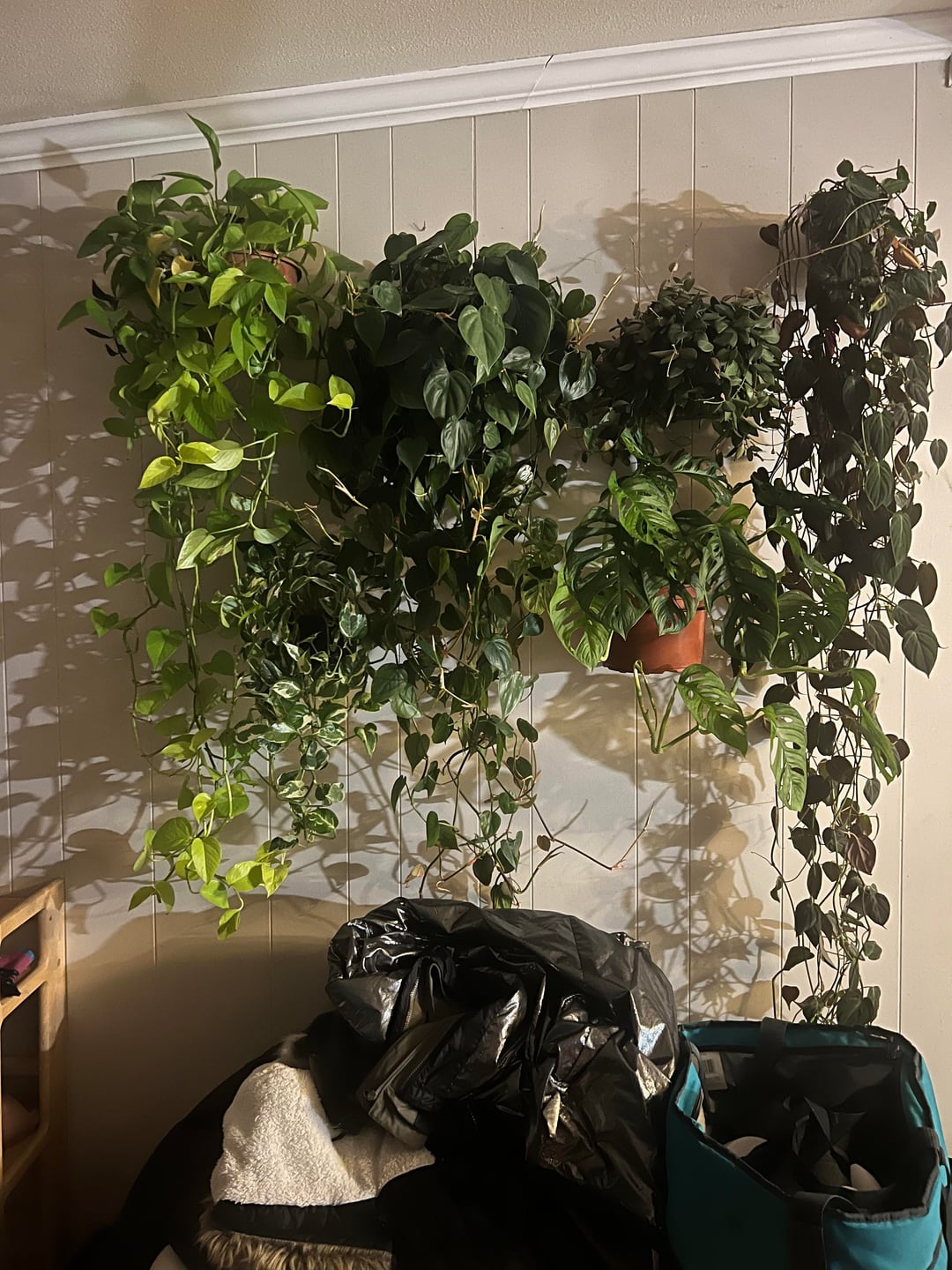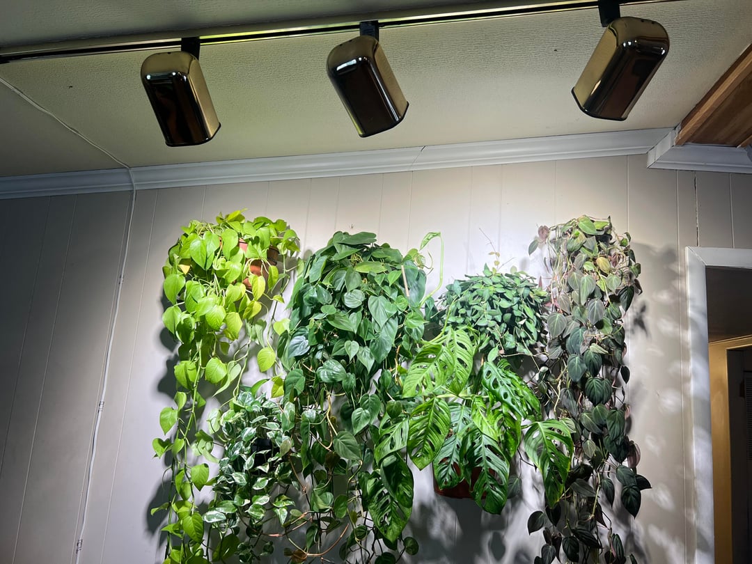 I created this living wall and put my plants under these 3 32w Sansi grow lights. My plants are not reacting well. Variables are that I added another neon pothos to the back of my fuller one and I repotted my philodendron michans. They were not in any grow lights with the original pic. I added the grow light because I didn’t want them to fade away because they were in more light before I put them on the wall. The lights are about 2.5 feet away and are on for 12hrs a day . The neon gets 1000fcs, and the Hoya gets 1000. The philodendrons get 400-700. The pothos gets 400 and the adansonii gets 700.