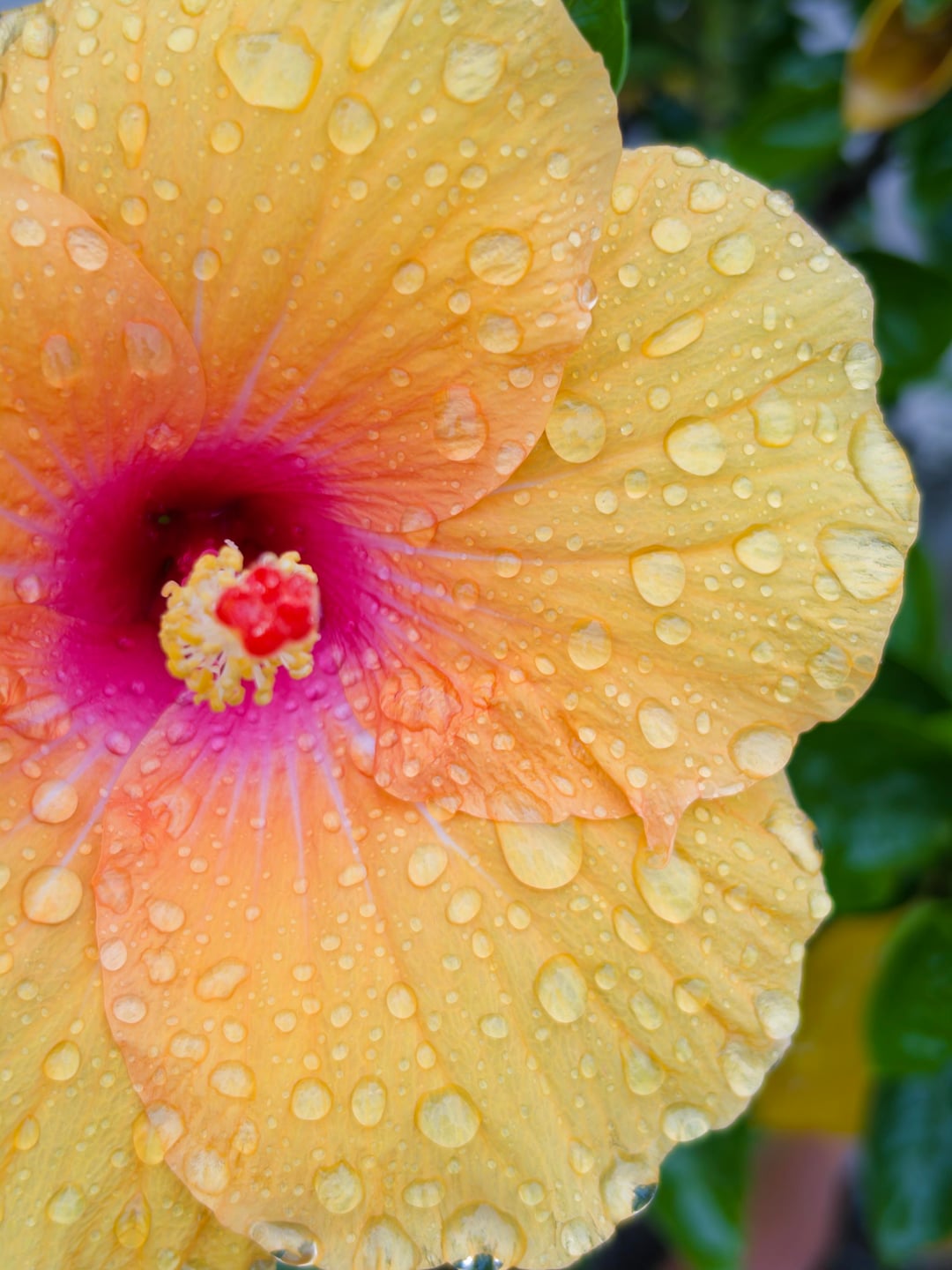 The water drops create a magical effect on these colourful Hibiscus on our rooftop garden. Isn’t it?