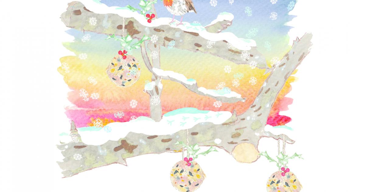 Just as the holly tree is a deliciously Christmassy image, so too is our nation’s favourite bird, the robin, whether it’s on the front of a Christmas card or an important character in my picture book series for children. There he is, perched proudly beside fat balls that look to me like tiny Christmas puddings, ready to feast and remind us that even on the coldest days the garden has its own celebrations. And a starling murmuration is the icing on the Christmas cake. A living ribbon rippling across the sunset sky – nature putting on its own performance, free of charge, for anyone who happens to glance up.