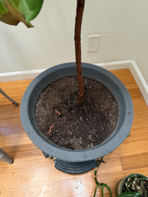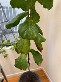 Wow what a beautiful tree! It could be the opposite of what you’re thinking. I see the dark brown edges of the leaves on the bottom and suspect for a tree of that size it’s being underwatered. But not to worry this is an easy fix! I recommend making sure to water when the top inches of soil are dry and ensure all the soil is soaked and drains really well out the bottom drainage holes. Then wait to water again when the top inches of soil are dry. This should be around every 7-10 days or so.
