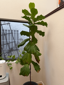 I've recently inherited this FLF and it was growing two new leaves over the summer, but when it hit "winter" (Coastal Southern California), within the last two weeks 2x leaves dropped and the baby leaf that was growing from the top died.