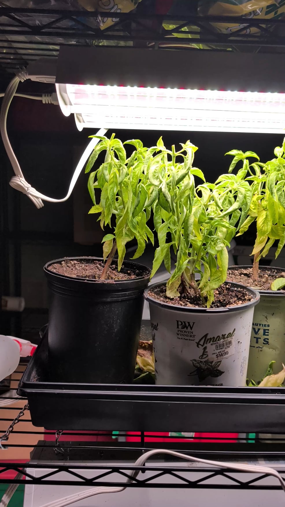 Might be better to start new plants from seed under the grow lights. Whenever I have tried to overwinter my basil it’s gone down to white fly or other pests that like the indoors.