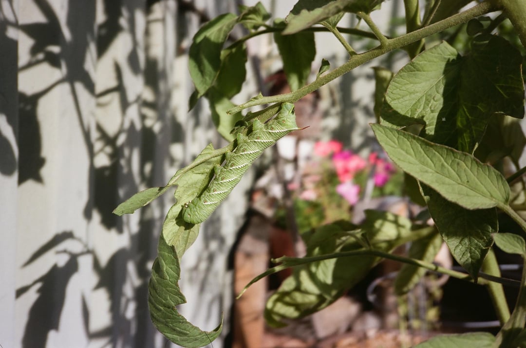 5 stories up and I still managed to get a couple of hornworms 🙃 i was lazy with the pruning so I let them do the work for me