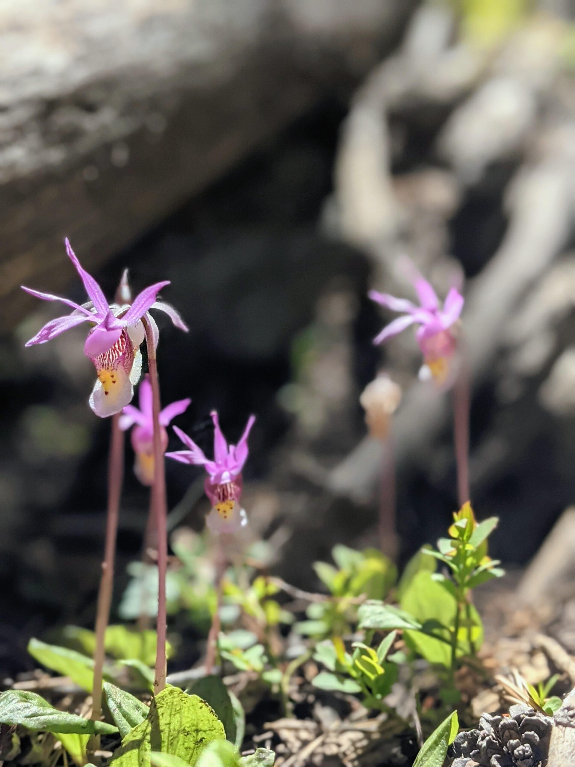 We also have these where I live in Oregon. From what I understand, they grow from corms underground and are resistant to forest fires 🌲🔥 due to this trait. They are pollinated by bumble bees. 🐝
