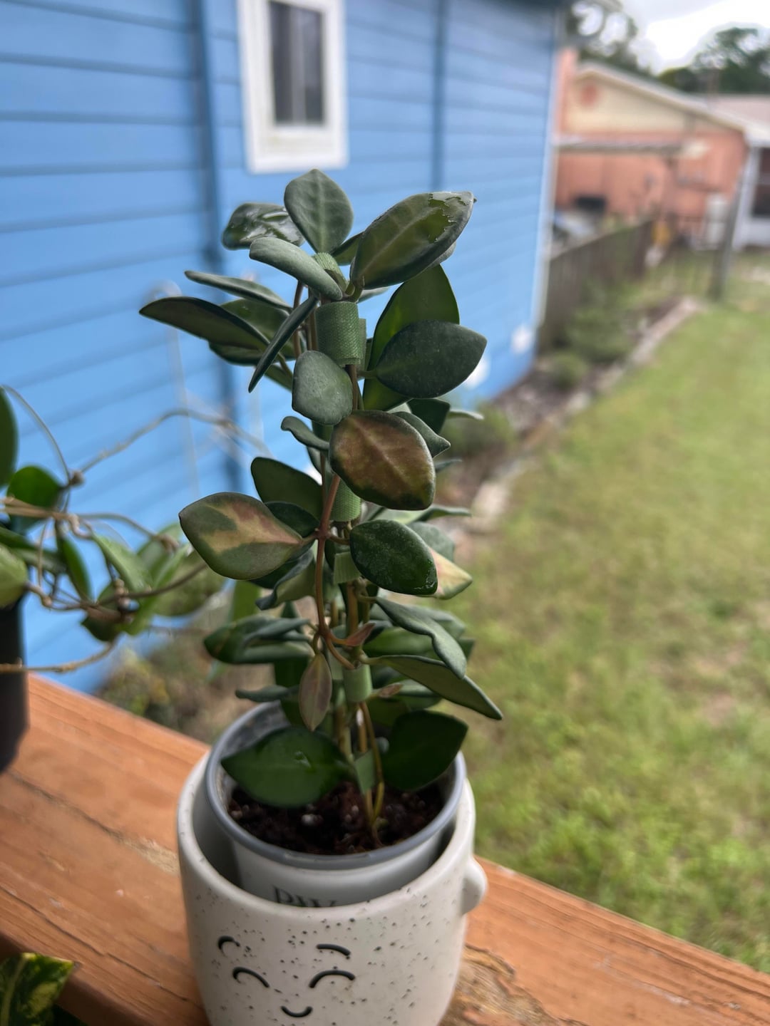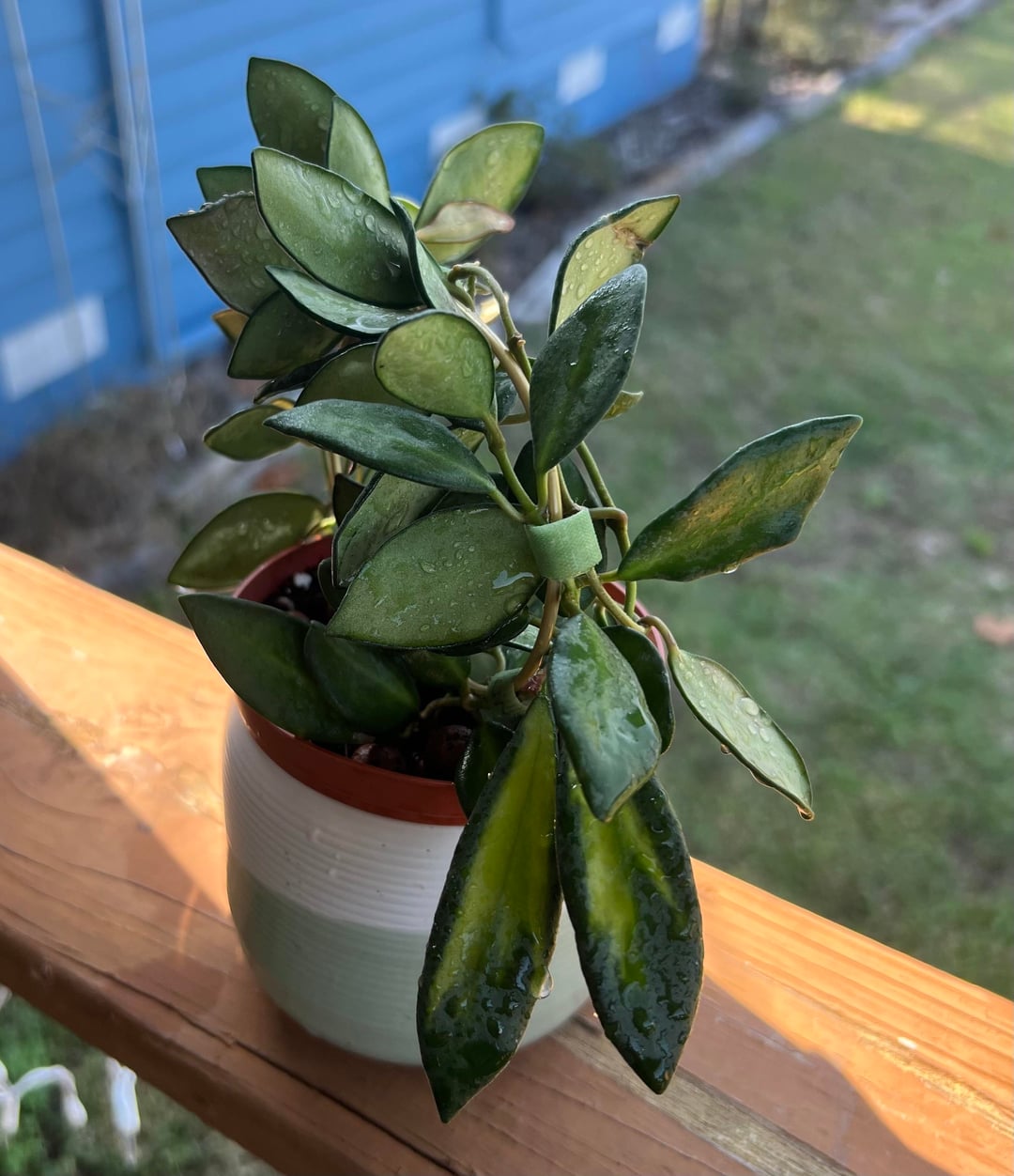 Bought her about a year ago, she’s one vine about 3’ long. I just repotted her today 💚 by compactacollector hoya 1 Comment Unusual_Job6576 2 days ago Looks like a hoya sp. aff. burtoniae (inner variegated).
