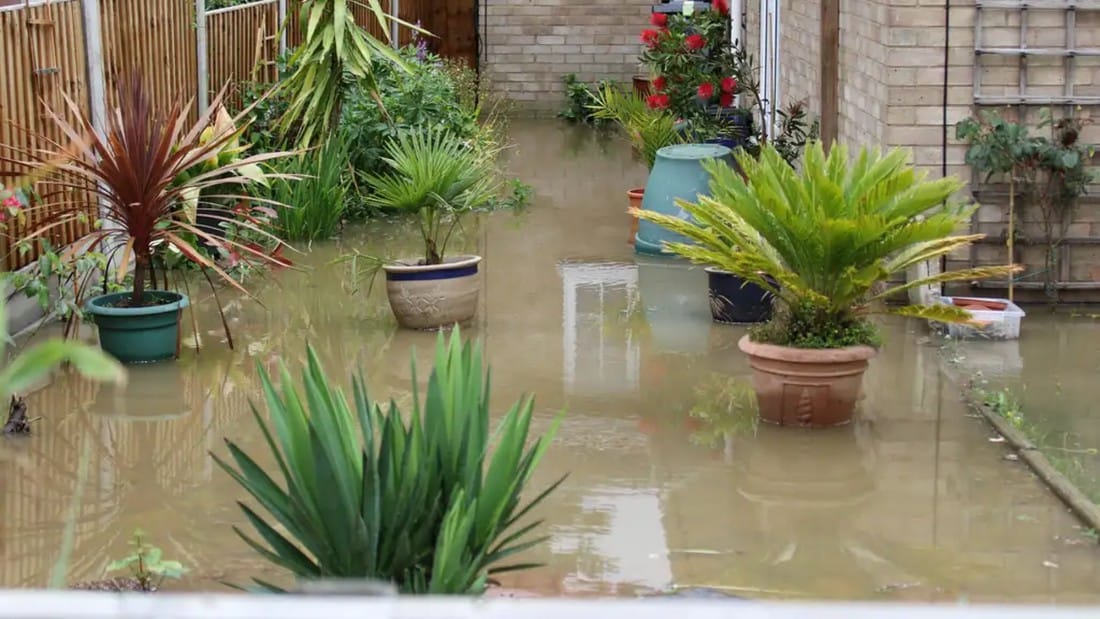 PATIO PROBLEMS: Large areas of solid paving can be prone to flooding (Image: Alamy/PA)Use permeable surfaces