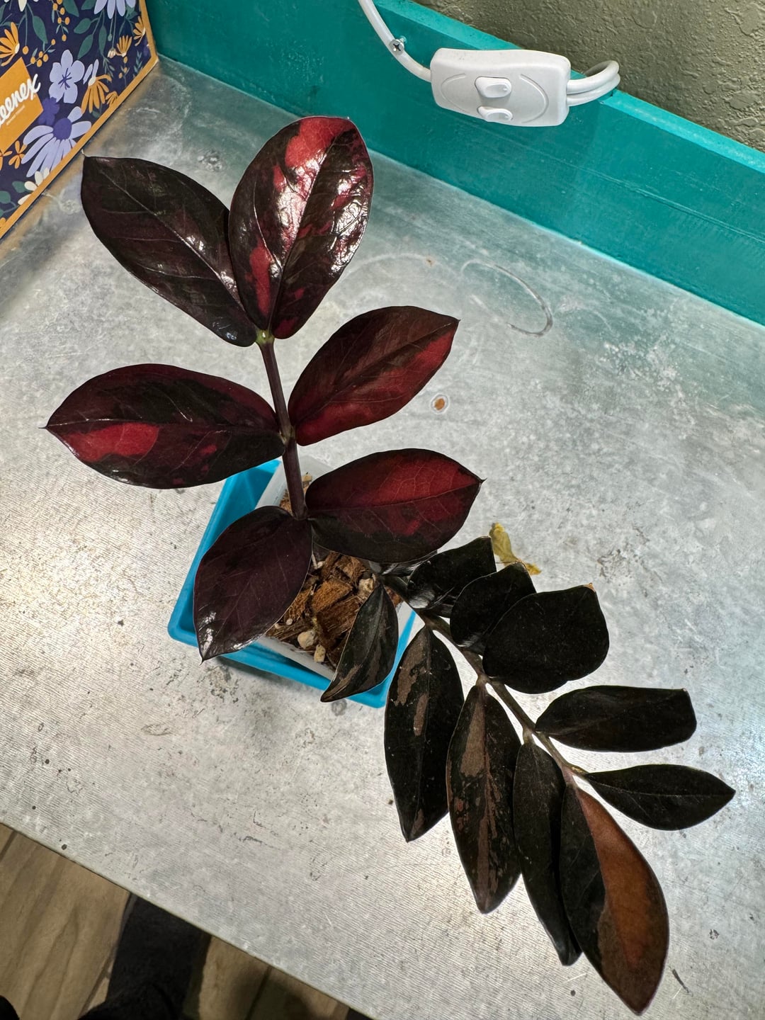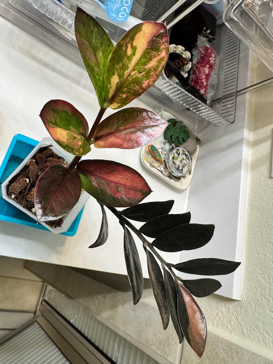 Just wanted to show how the color looks once the leaves harden. Now it has the classic black leaves with deep pink were the more colorful variegation was. It’s a very interesting plant to watch mature.