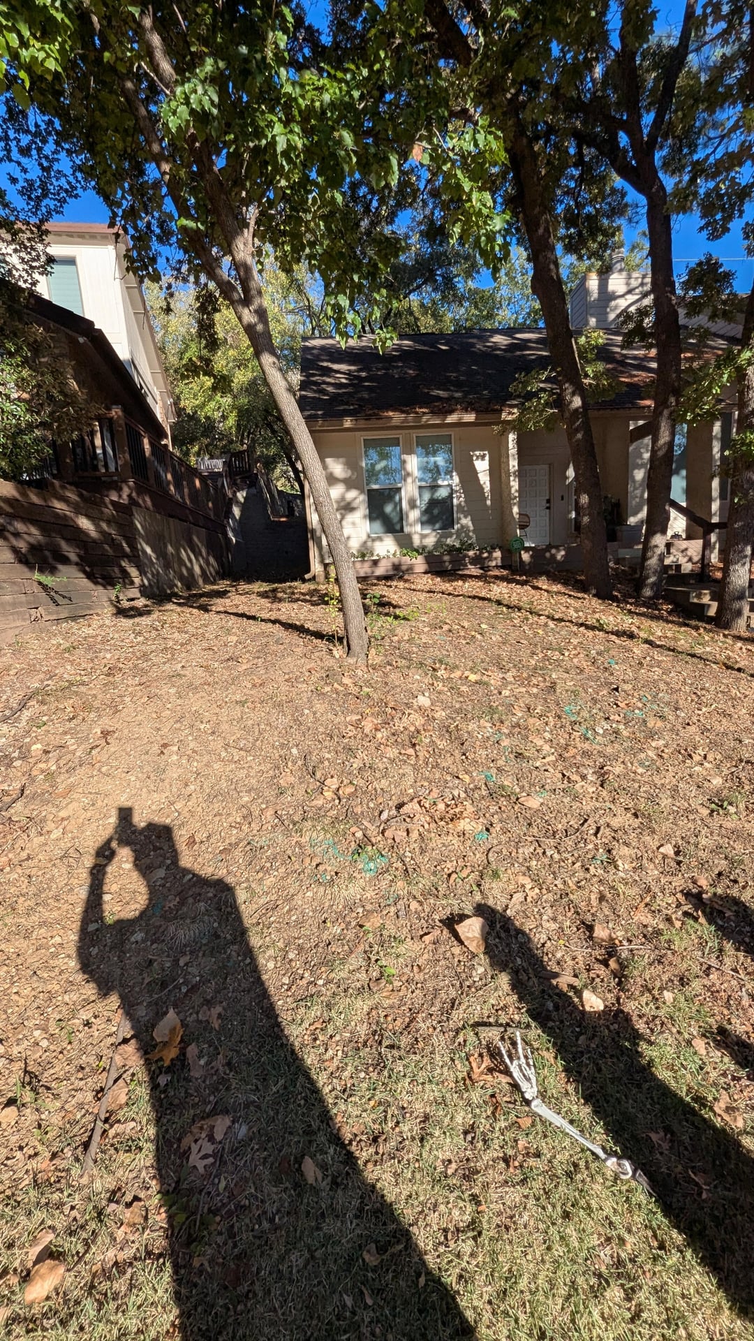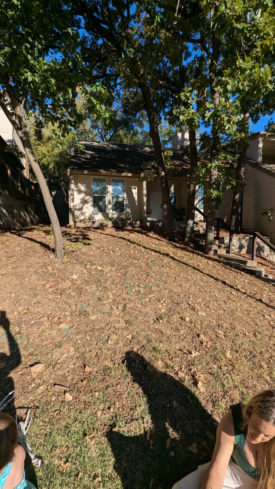 You could try tilling it and watering it, loosening the soil. It looks like it’s getting good sun here..try a small patch of the area first before doing the whole yard too…see what works!