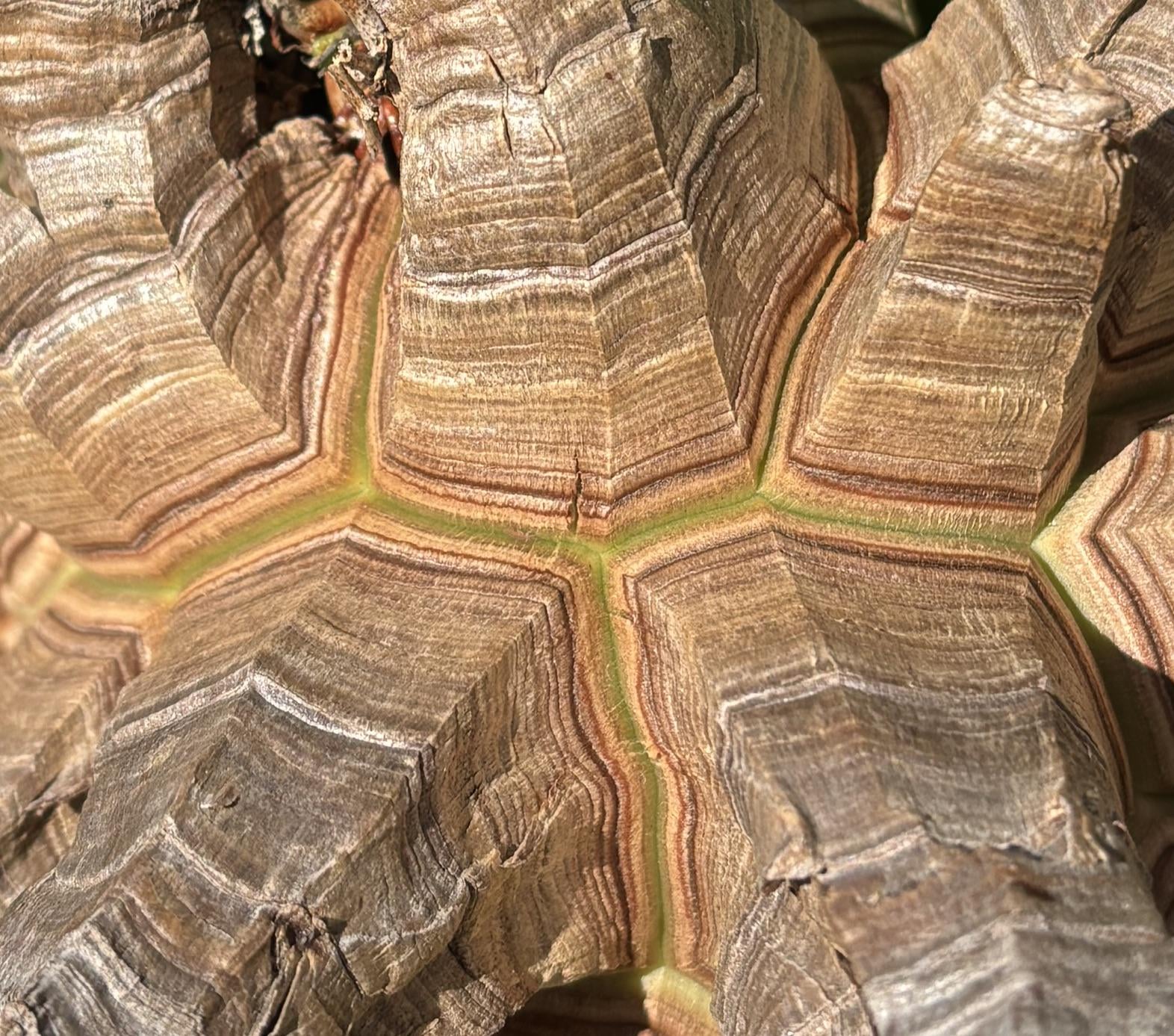 If you follow the green section outward, you’ll see a lighter brown band then a darker brown band, then another lighter brown band and one more very dark band. That last dark band marks the beginning of this growing season.