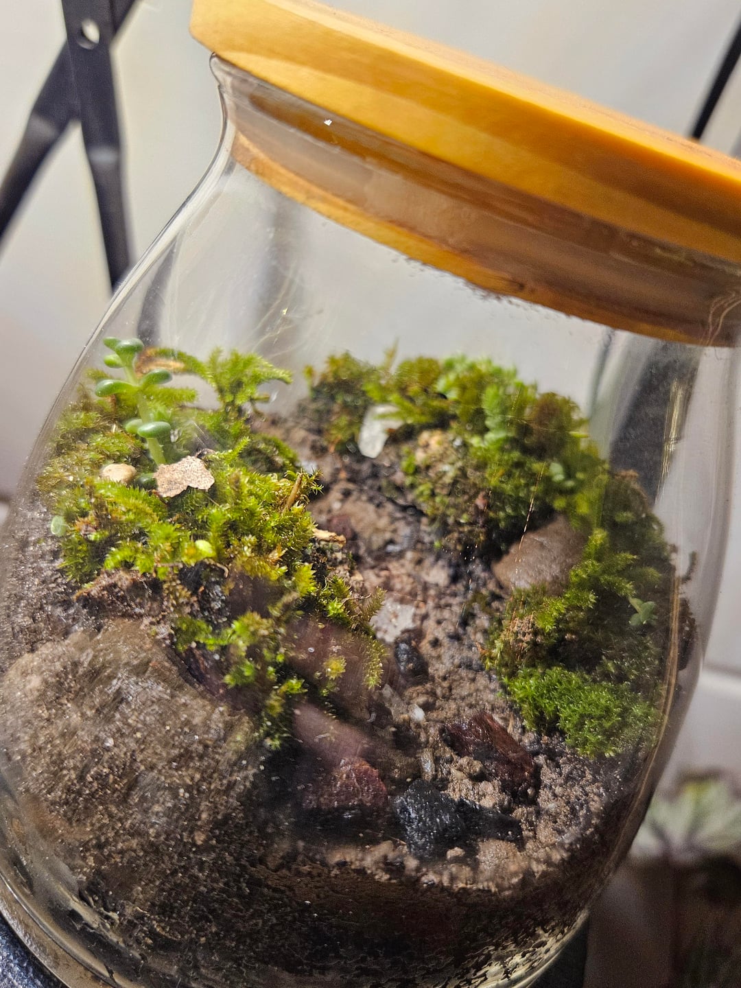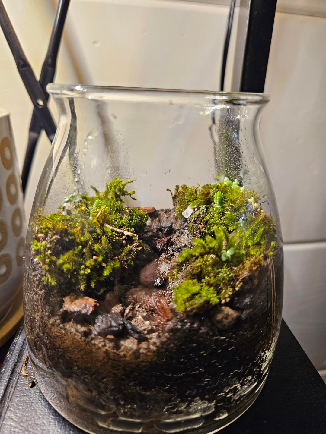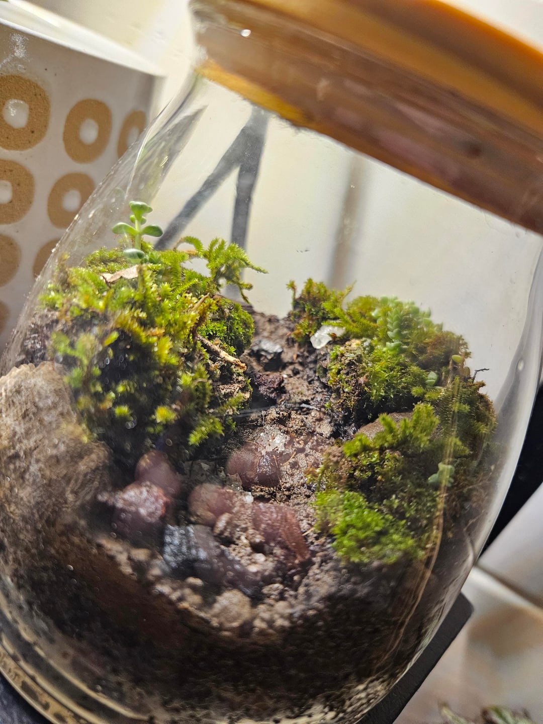 I sealed up this lil Mossarium a couple weekends ago and its looking quite fluffy! Last pic is when I sealed it up.