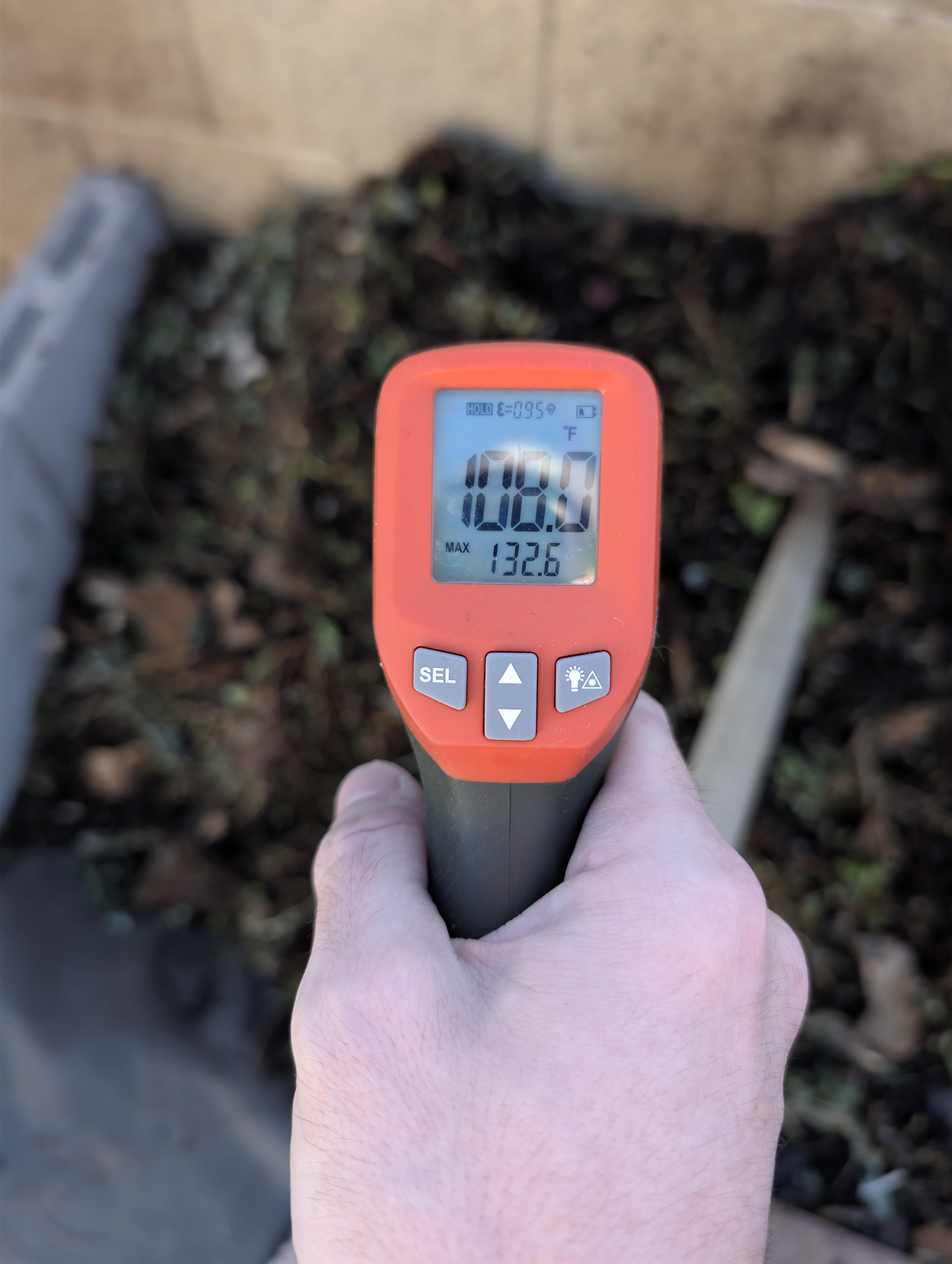 This was only about 10" deep so it's probably got some hotter spots. It was only like 100° yesterday before I flipped it and added a bunch of shredded tree branches. It got hot fast.