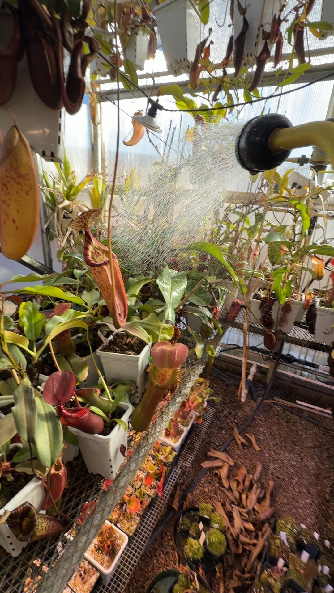 My sanctuary, just me watering the highland Nepenthes & Heliamphora house before the day starts.