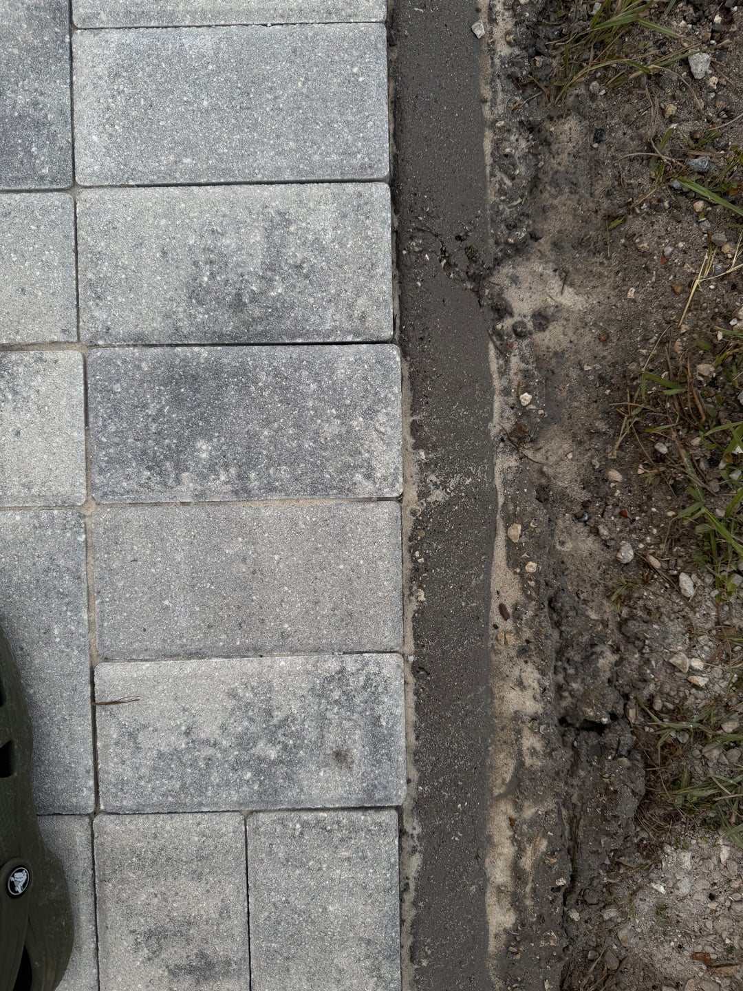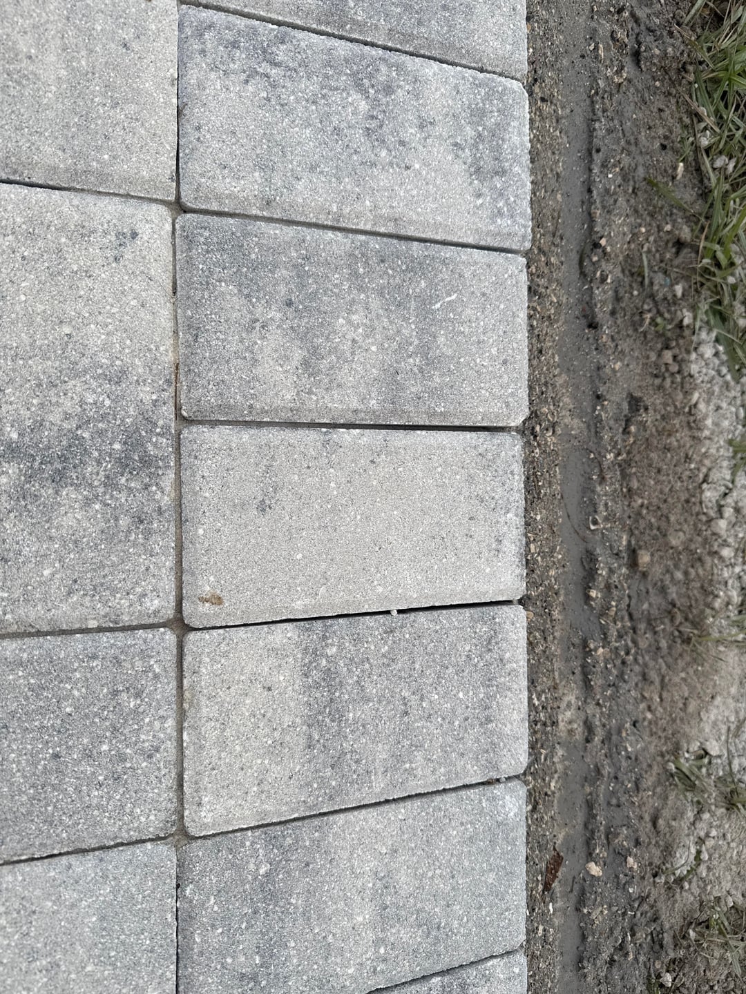 Looks good to me. I might have offset the soldier course so that the gaps didnt meet like that but whatever. For sand, on the westcoast silica sand is normal. Polymeric is better but pricey. $1.50 a sq ft installed.