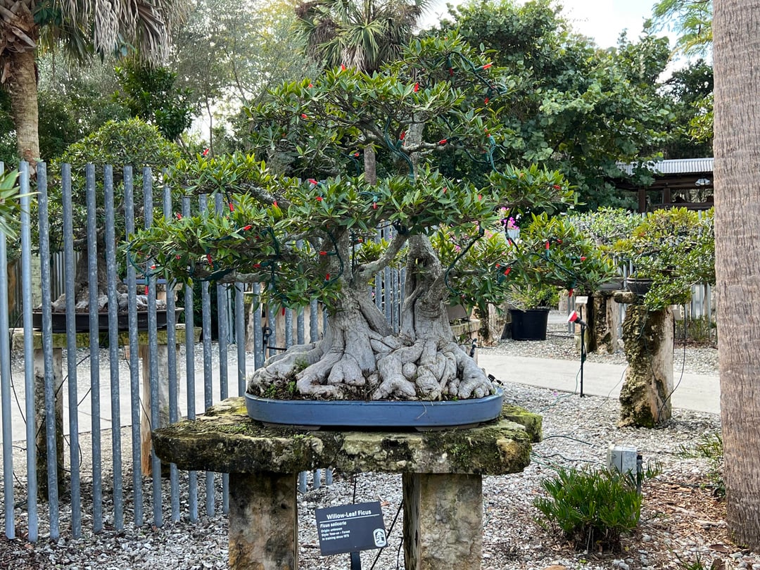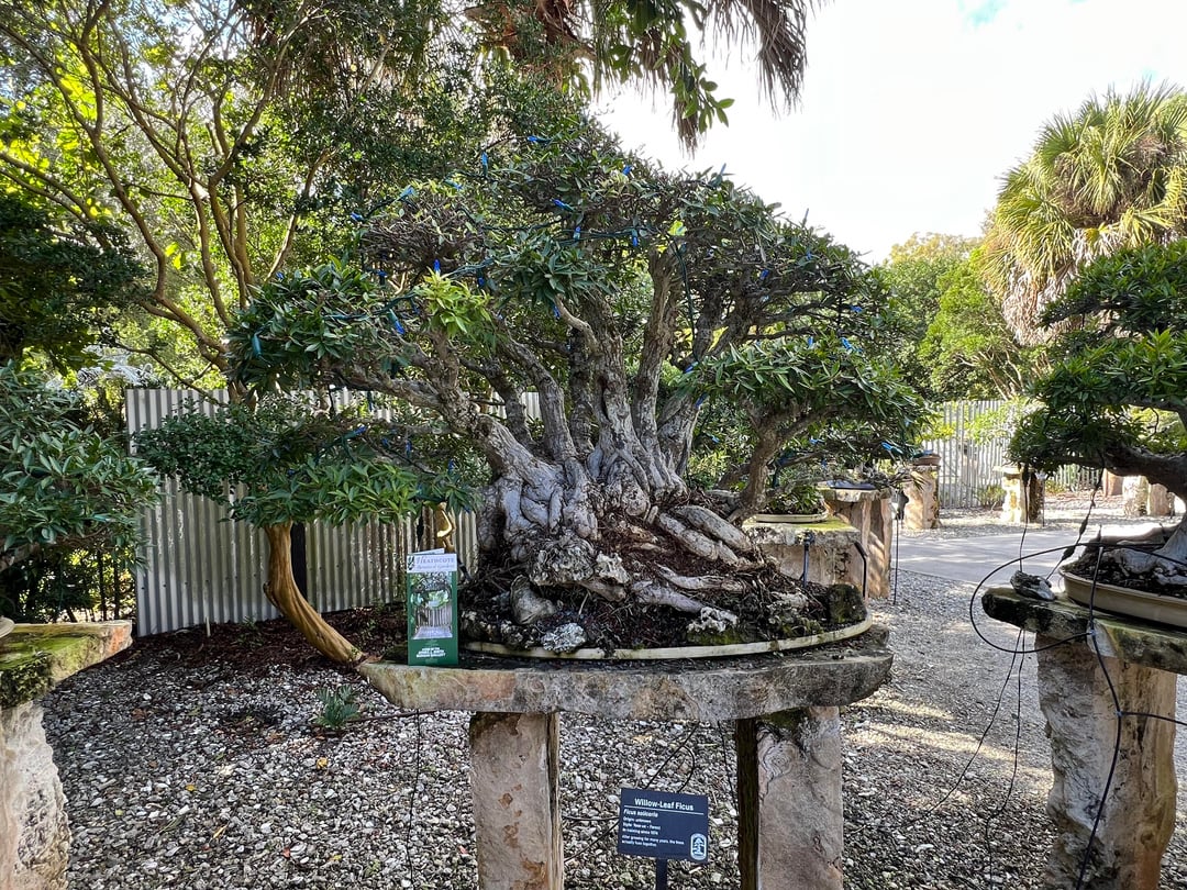 Unbelievable tropical collection, some in training for over 50 yrs. Lots of ficus, dwarf jade, and other species. They say its one of the larger collections in the US. Definitely, based on the size of some of these giant beasts. Photos don’t do them justice, pamphlets for scale. Some draped w lights for their annual holiday nighttime display. Enjoy!