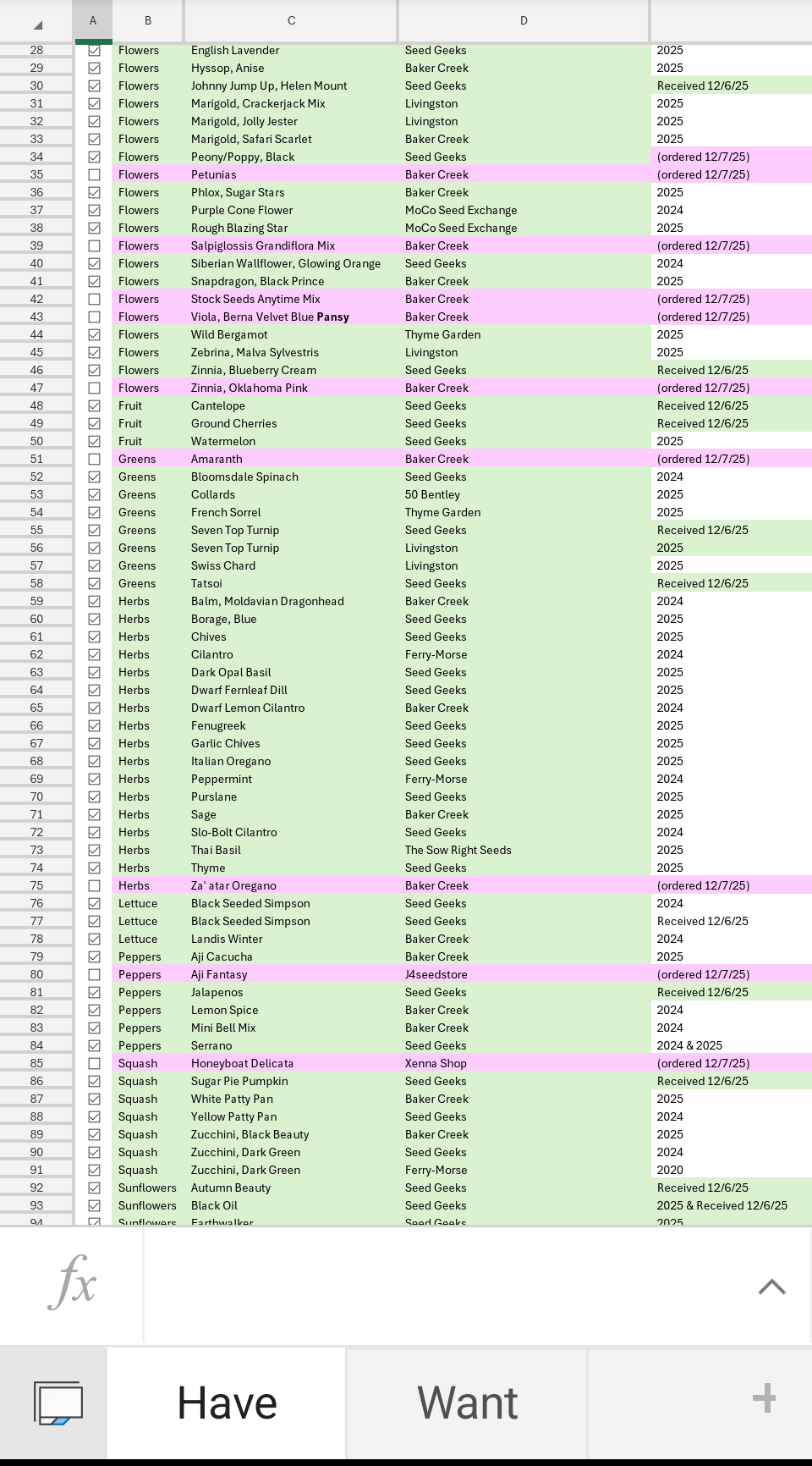 I don’t do a spreadsheet but will list the varieties in a notebook, where I’ll keep track of sowing details so that nothing gets forgotten.