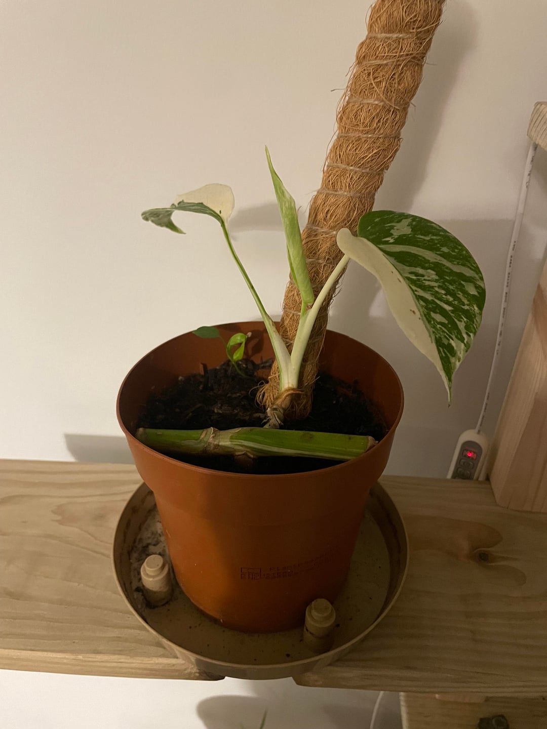 My monstera albo hasn’t done anything for a year and a half. Now there’s a new leaf on the go! I think she knows I needed it lol.
