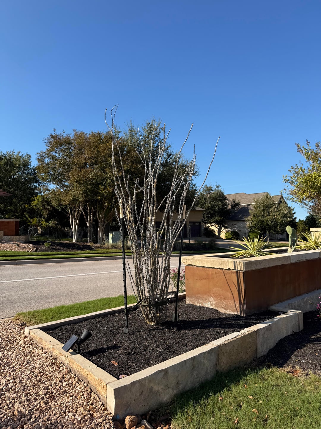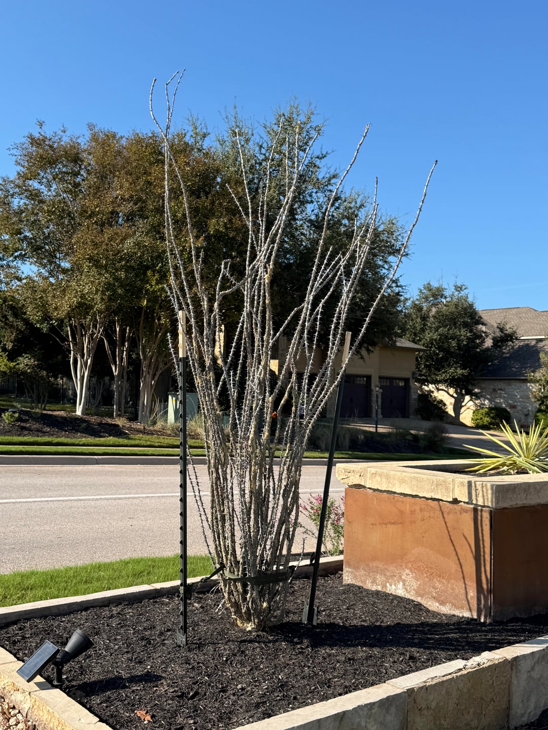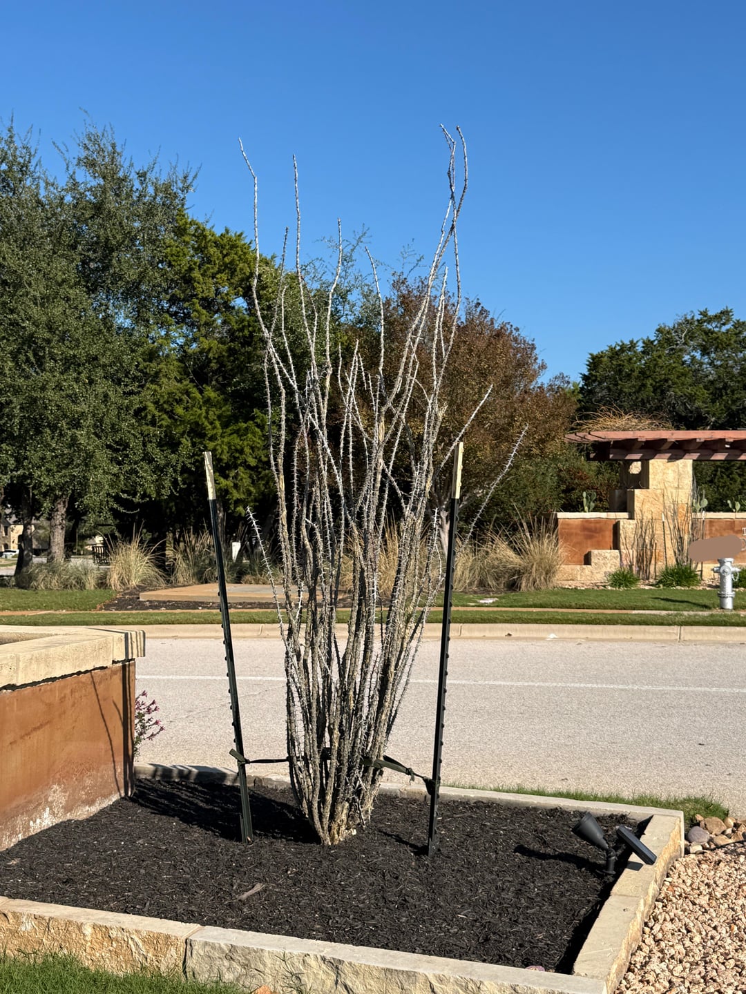 My neighborhood planted this beautiful ocotillo in a full sun planter, which is also exposed to any cold spell that might happen over winter.