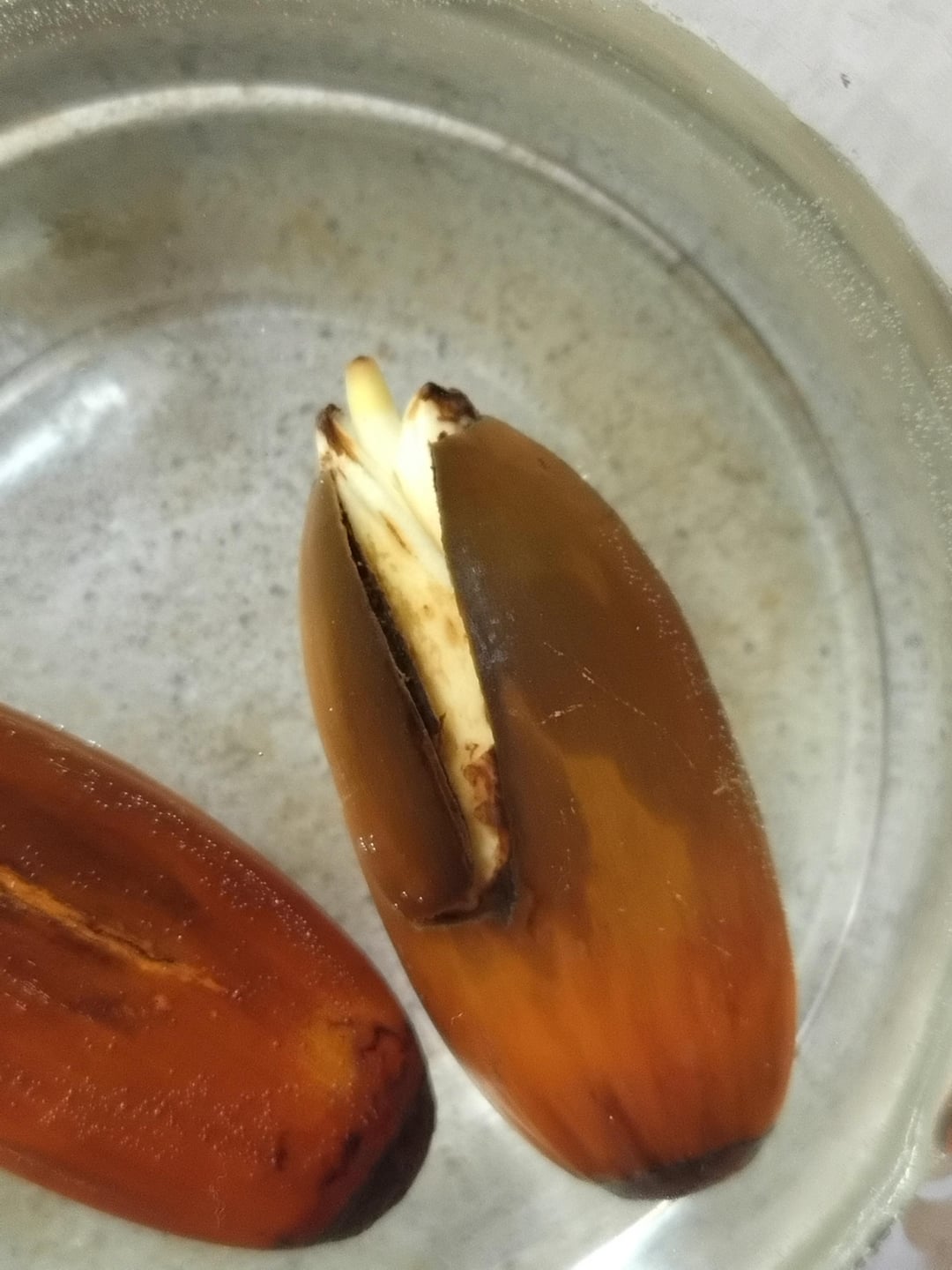 Scarify by cutting about 3mm from the distal end with a sharp, clean knife, trying to expose the embryo without damaging it. Don’t worry about the endosperm, if you can't see the embryo, keep looking for it buy cutting EXTREMELY thinly. Sometimes you'll cut a teenie tiny bit of it, don't worry, just try not to overextend, otherwise the seed dies.
