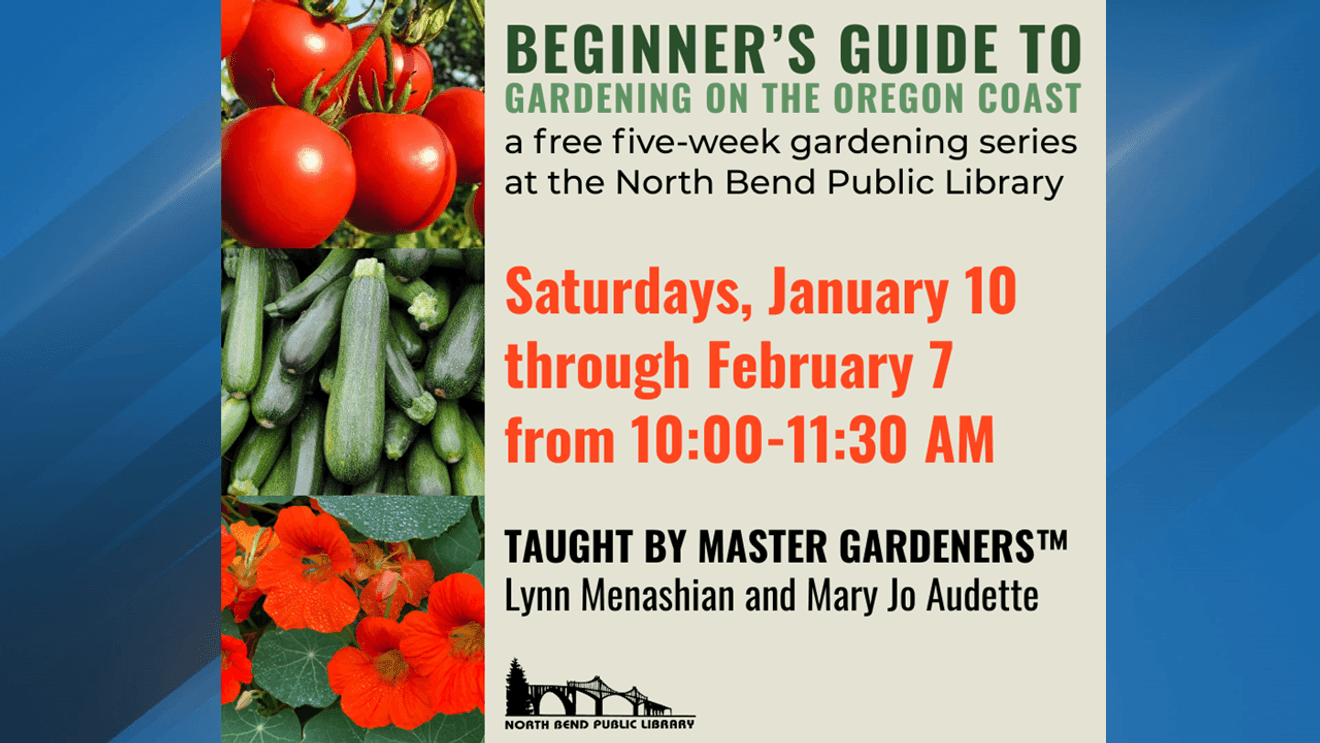 NORTH BEND, Ore. — The North Bend Public Library will host a free five-week gardening series for beginners starting Saturday, January 10, from 10:00–11:30 AM.