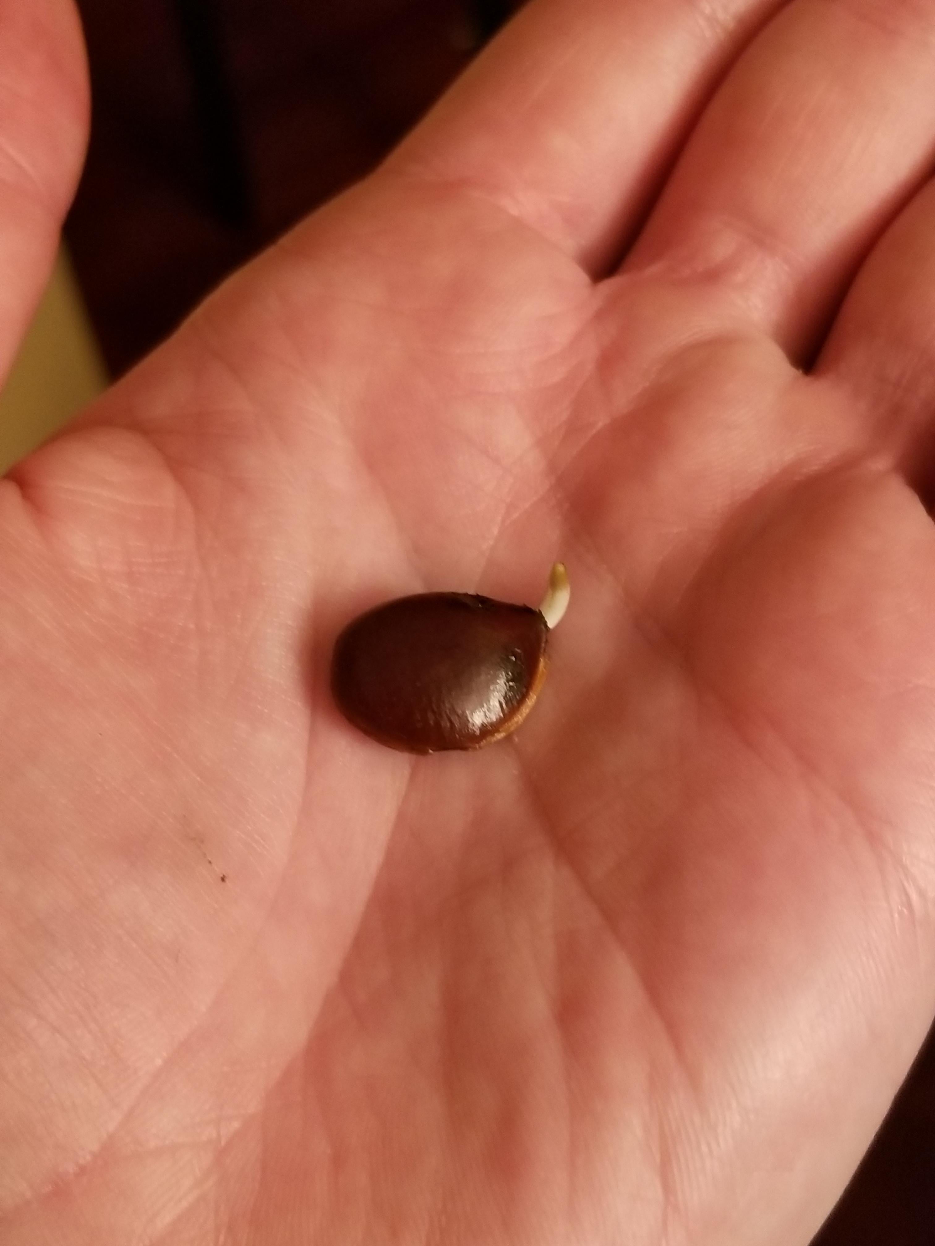 I found a single seed in a store-bought fuyu persimmon that I was eating. I was planning to stratify it in the fridge for 12 weeks, so I placed it in water first to prepare it. I forgot about it for several days and today I noticed this.