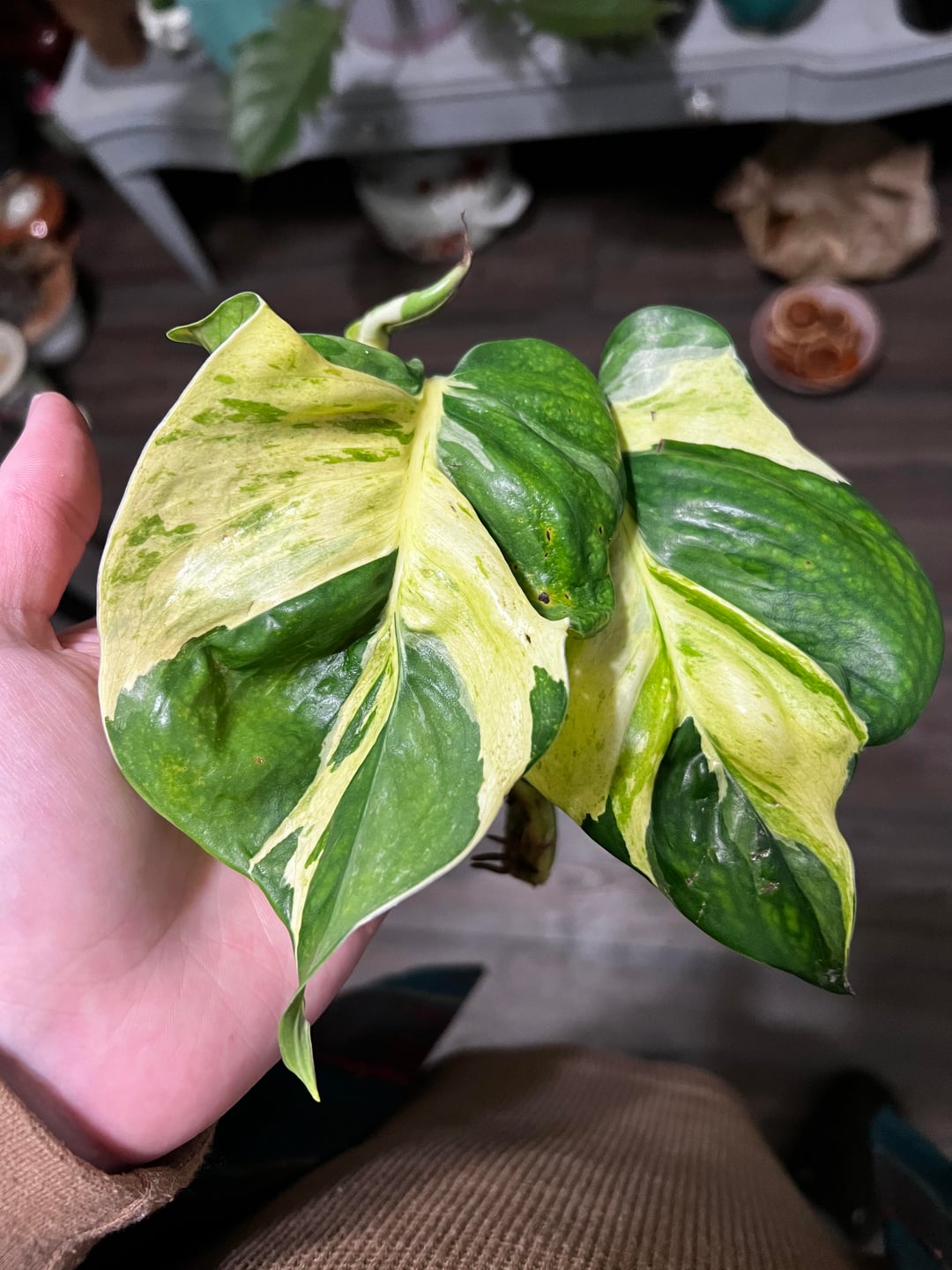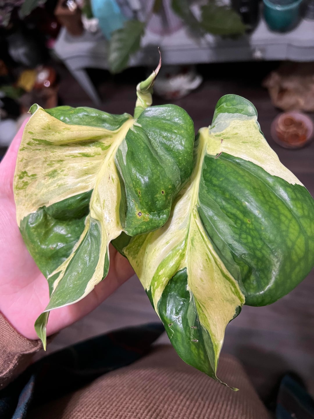 Up until now, all the leaves looked like classic Manjula leaves. The last couple it has put out are really different in that the leaves aren’t totally flat. They are sort of folded and wavy. It reminds me of a shangri la. I’m having trouble determining if it’s an actual mutation or some other issue. Can aroids mutate mid vine?