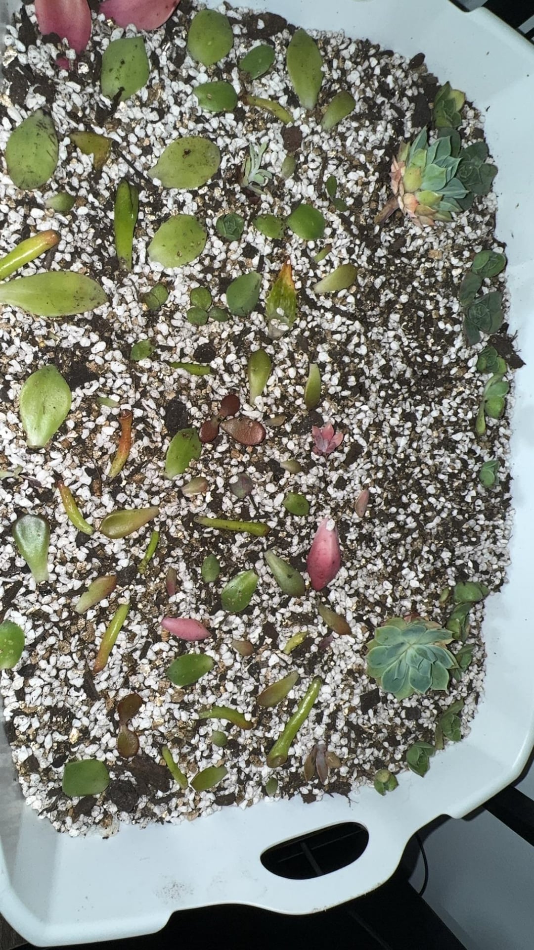 Mixture is mostly perlite and vermiculite mixed with a bit of soil to fluff it out.
