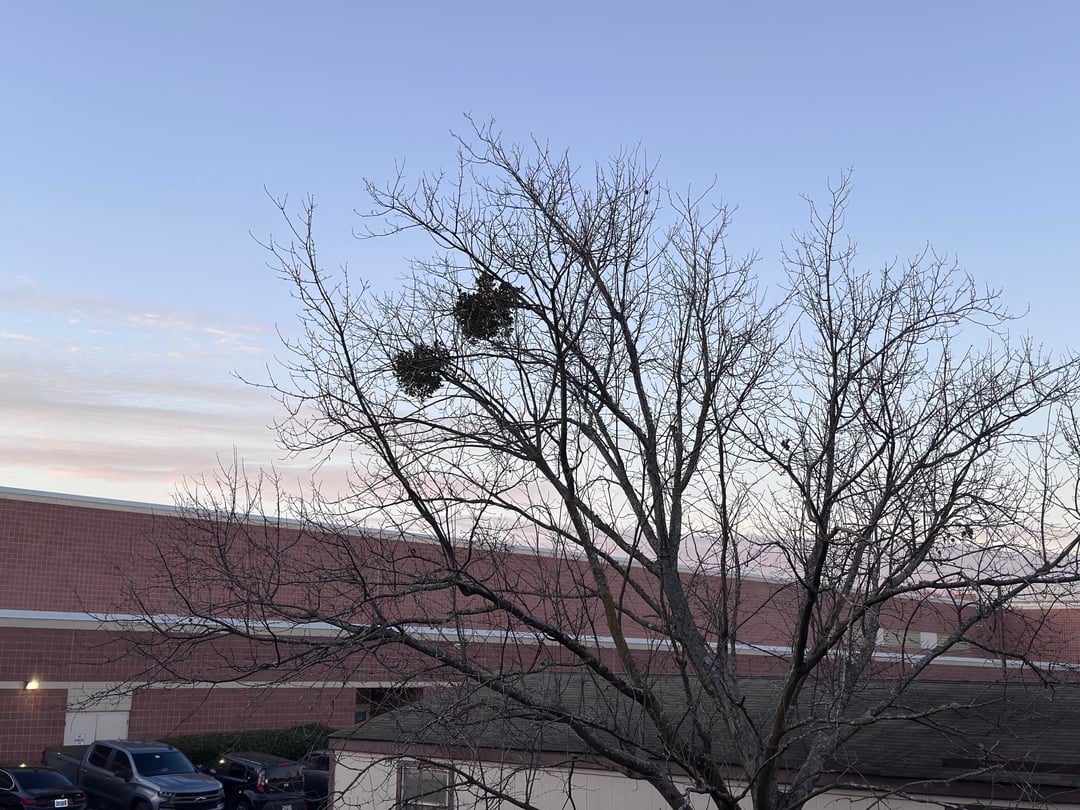 Mistletoe is a parasitic plants that grows in tree canopies like this.