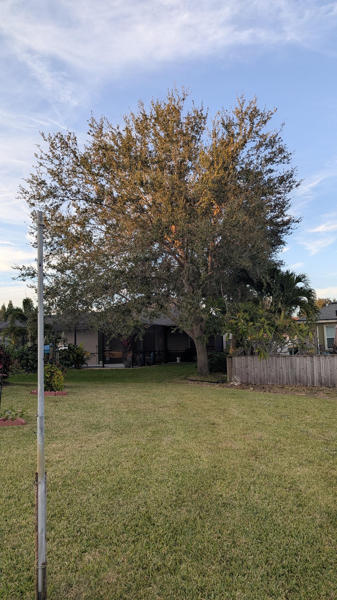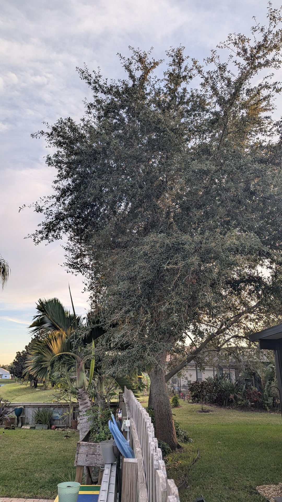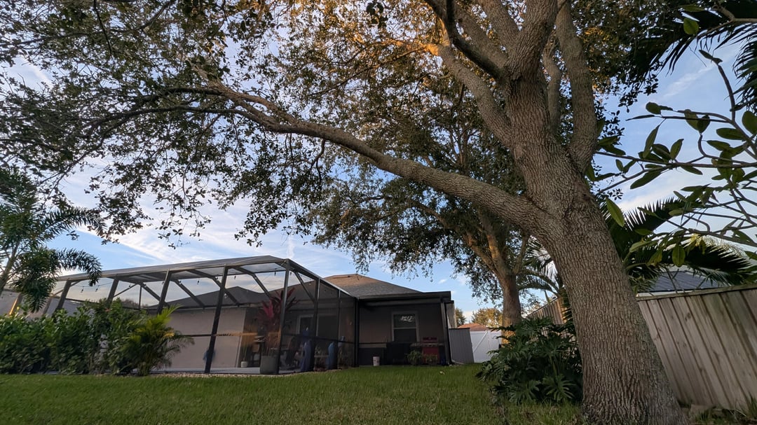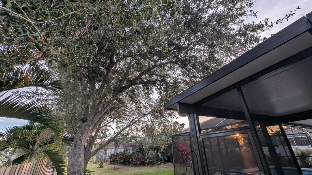 My two oaks here in east-central Florida are probably 25-30 years old, and a few times my neighbor has trimmed them as straight up from his property as possible. He doesn't like the leaves getting in his pool. The trees are right next to the fence and starting to get lopsided due to the trimming. They have been growing further over above my screened lanai, which worries me. The trees do not have any signs of weakness or disease, other than my neighbor making them lopsided.