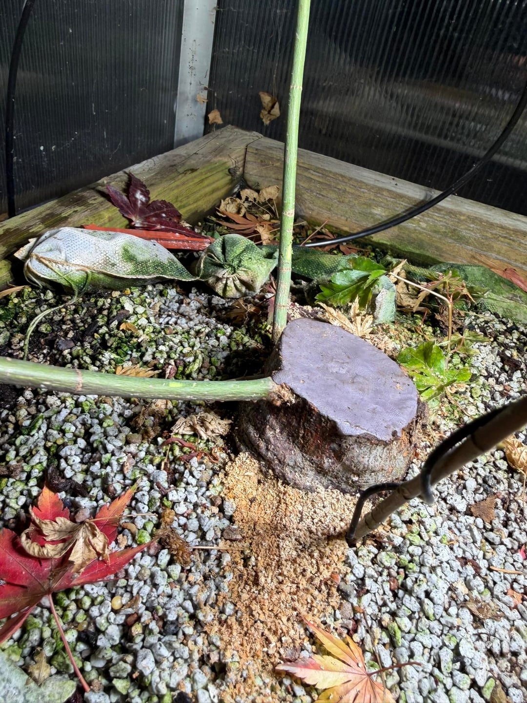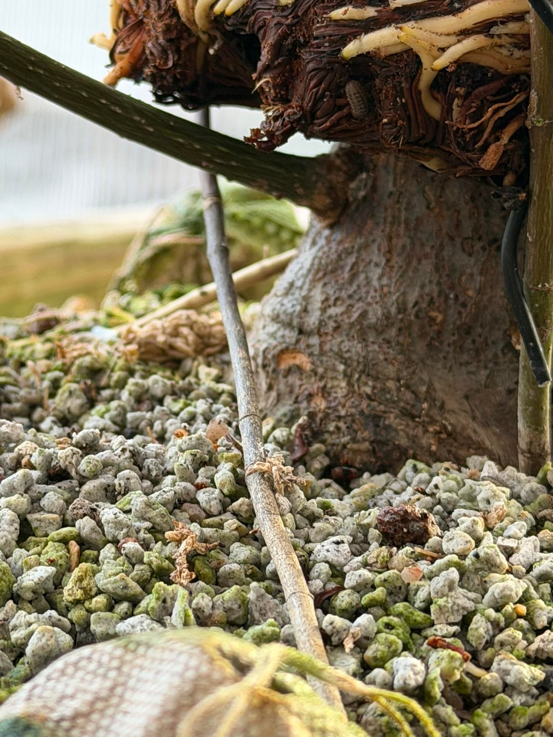 In November, I decided to check the roots and to my surprise, they filled out the entire black pot I used. I decided to remove the airlayer before the temperature dropped below 40F (4C) and potted it up with pumice and moss. I also put the pot into a larger bot filled with mulch just to insulate the sensitive roots over the winter.