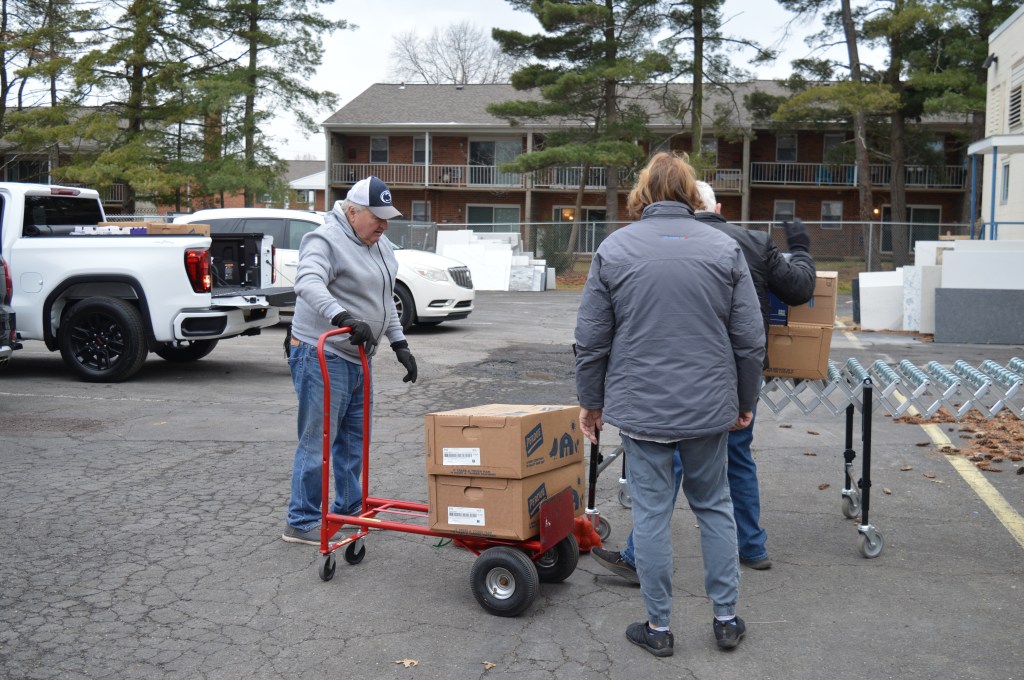 UPPER GWYNEDD — As volunteers hauled items off the conveyer belt outside the Garden of Health Food Bank to take to food pantries, organizers of the two-day distribution event noted the importance as food pantries stock up for the holiday season and increased demand.