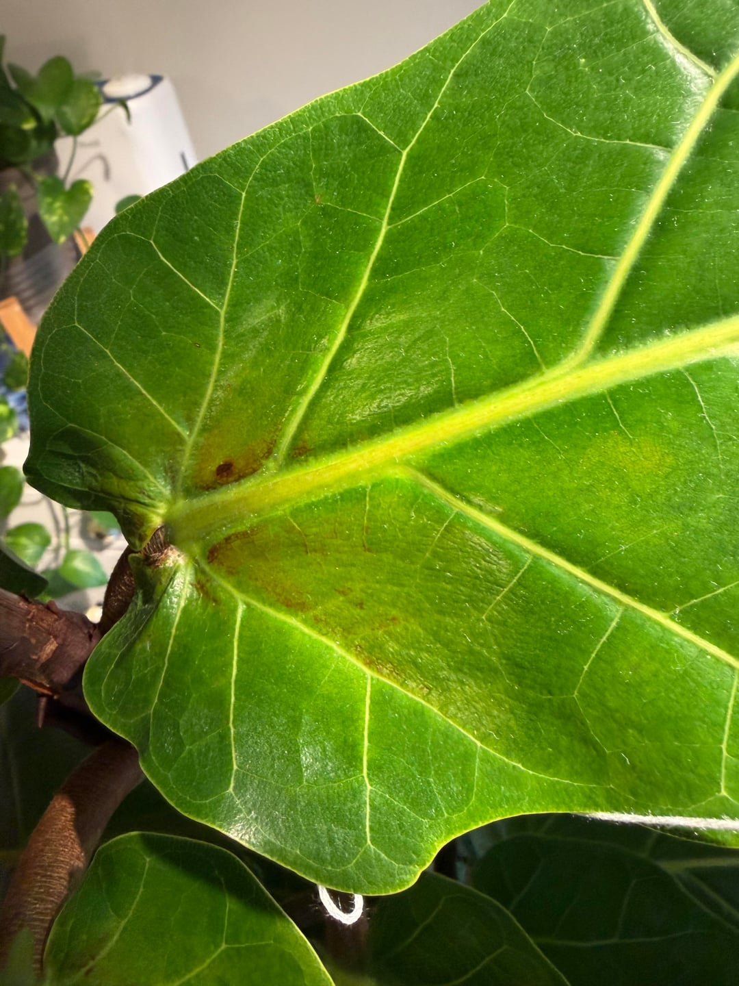 Hi! I have had this tree for over 5 years and she’s been healthy for the most part. She was thriving before I moved in June to a space with much less light and after battling an early stage thrips infestation months ago she seems to have recovered. I have a soltech grow light and she’s sprouted more leaves since but now I’ve been seeing yellowing/brown spots on the leaves. I’ve inspected regularly for any thrips but haven’t seen any (have been putting systemic granules since the infestation and using dead bug brew) I reduced watering bc I thought I was maybe overwatering it but the leaves haven’t gotten better. It’s been very cold here but I’m worried if I move too far from the window it won’t get any natural light at all. Does this look like cold damage? I’m also afraid to repot during the winter. Pls help!!!