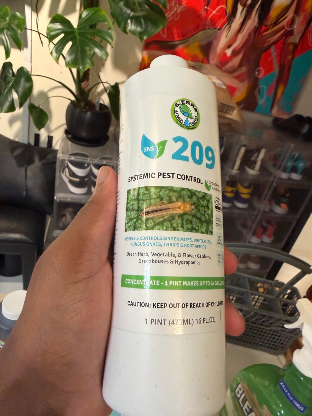 Quite a cocktail. I’ll be interested in your results although I don’t know if I’ll be following along but I do have a lot of these ingredients. I just got too lazy to keep adding them. The only other oddity to me is your substituting BTI. BTI Bacillus thuringiensis a bacteria known to combat fungus gnats. How do you “substituting with tree/shrub insect control”? What is the active ingredient in the tree/shrub insect control? That doesn’t seem like a reasonable substitution. I mean, I get wanting to have a systemic pesticide but that’s a big one. I assume that the sns209 is the original creator’s solution for systemic pesticide.