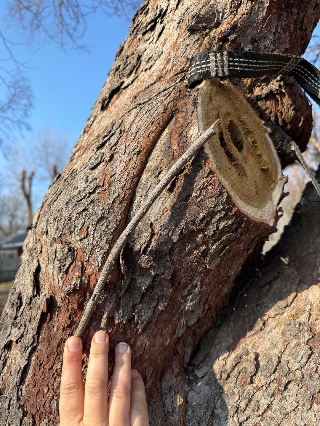 Had some tree trimming done on my redbud. I was kinda surprised they took out a huge branch for maintenance trimming. I just noticed today that there’s a huge hole that was filled with sawdust. The twig next to it shows how deep it goes ~8 inches for the smaller hole and ~4 inches for the bigger one. I’m really worried about water collecting in it and killing my tree. Is there anything I can do?