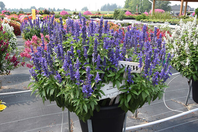 6. Salvia – Mystical Blue is a more compact blue salvia that branches well if given enough growing time. Mystical Blue also attracts hummingbirds through the whole summer season because the flowers age well and do not drop off so the florets hold the fluid that the hummingbirds go after. Mystical blue can hold three to four generations of flowers, and all generations look great at the same time. Great in the landscape if planted from a six-inch pot or gallons to have instantaneous garden appeal. Mystical would make an eye-catching centrepiece for combo planters.