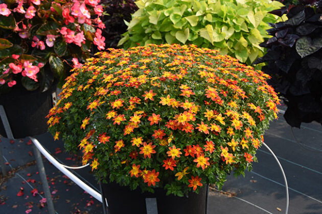 9. Bidens – Campfire Flame is vigorous and heat tolerant. Aptly named, the Campfire Flame keeps its orange colour through the hot summer which grows deeper in late summer when the average temperatures are lower. Biden can take cool temperatures, making it a terrific addition to fall combinations. Excellent performer in landscape garden borders and containers where it stays compact and does not split.