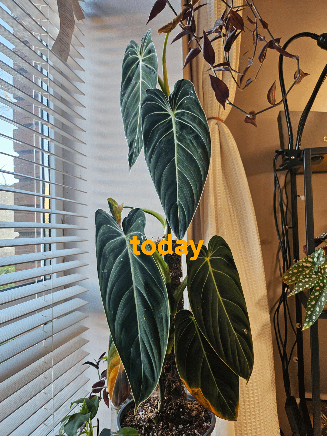 It's also right next to the window (facing east), like 20cm close to it. It seemed doing fine there. I just recently bought sansi 3 head clip lamp (30W per bulb), using it on other plants for the moment, while Melano still has the window (some of the growing lights it's still reaching to it but not a lot.