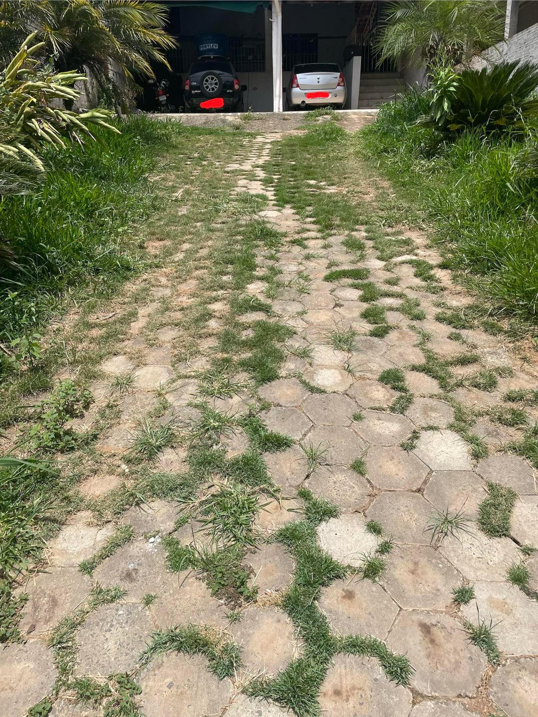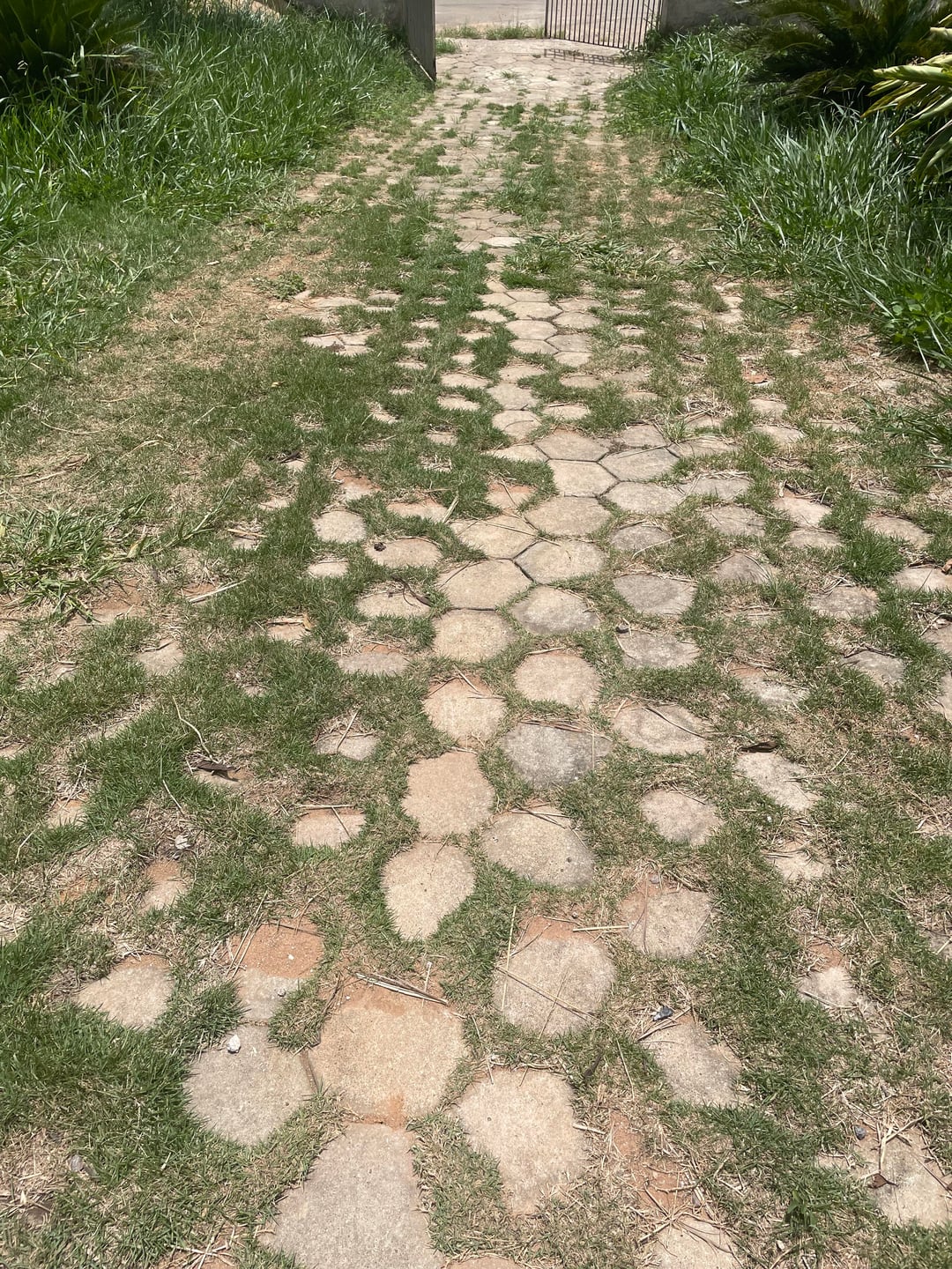 I need some advice on cleaning the driveway/path to my house, which is made of these hexagonal stone pavers. As you can see in the photo, grass and weeds grow vigorously in the joints because there is no mortar or grout between them—it's just dirt/soil.