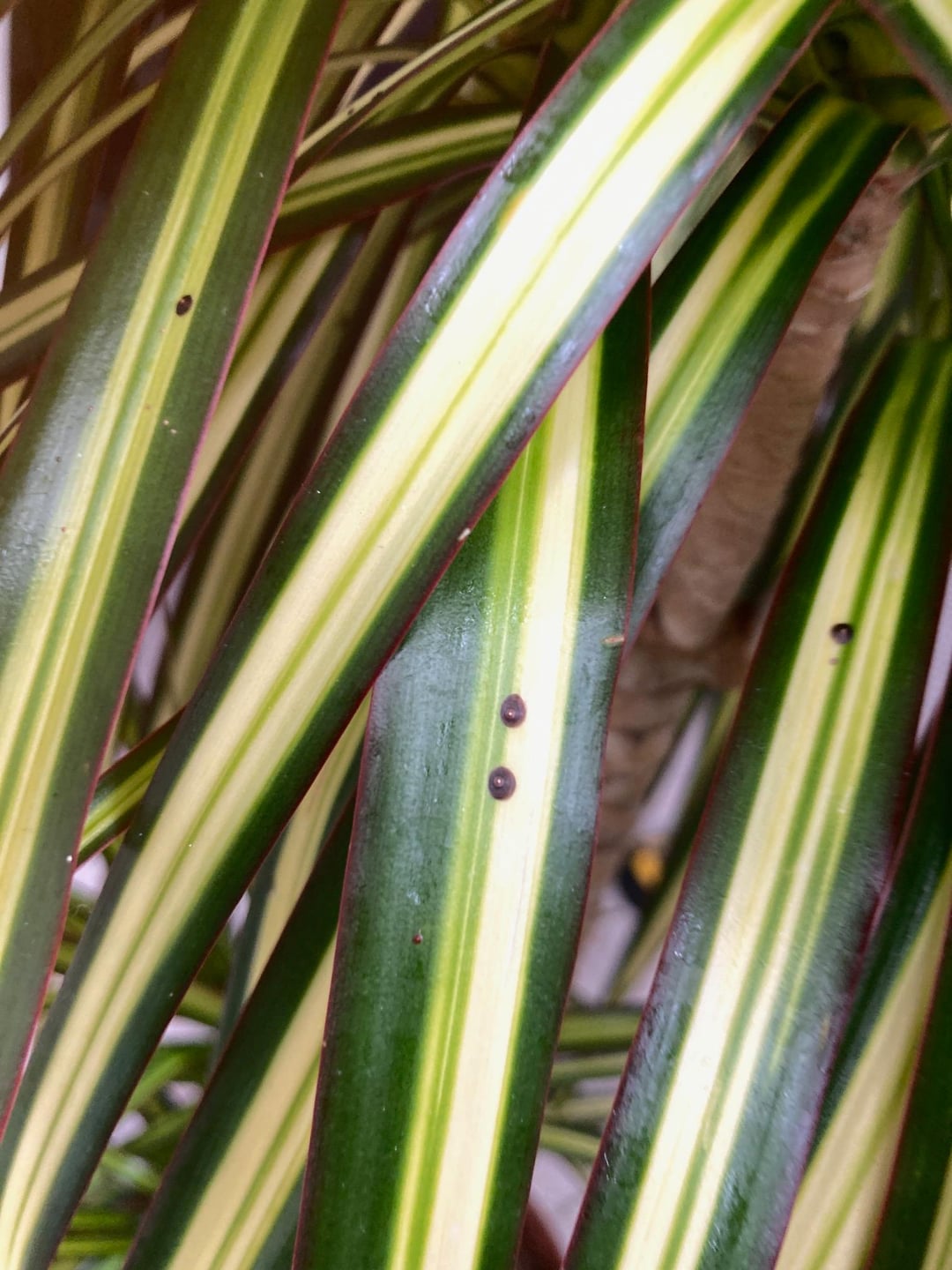 I need some help identifying a problem on my Dracaena marginata ‘Sunray’.