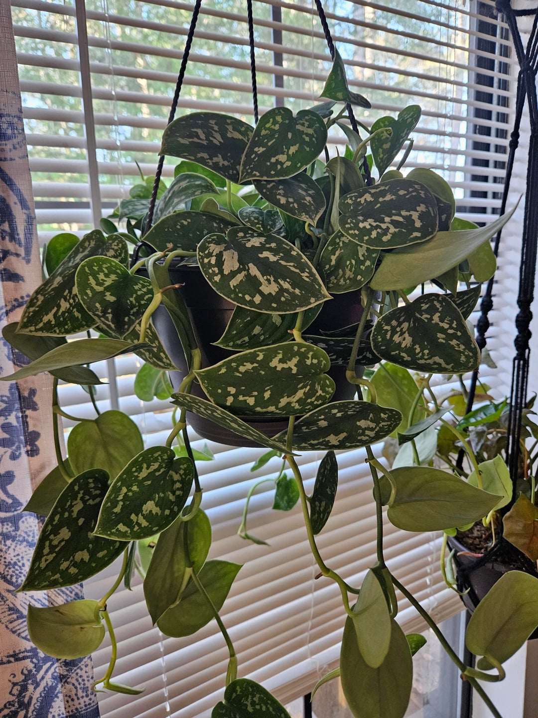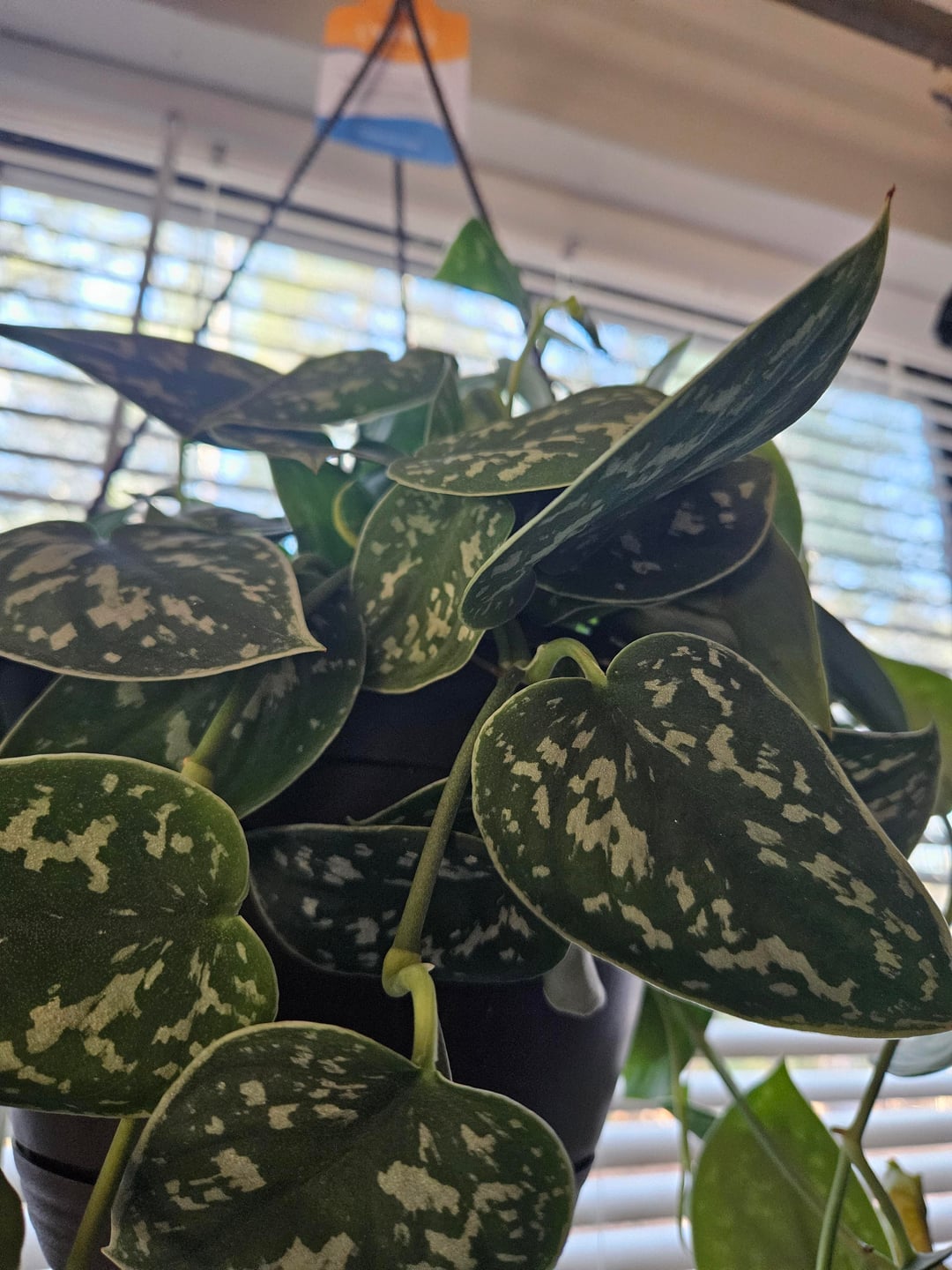 Satin pothos,very nice. My pothos are my biggest drama queens. I learned the hard way to only water them when they curl a little or else leaves turn yellow on me like I’ve offended then😑😂
