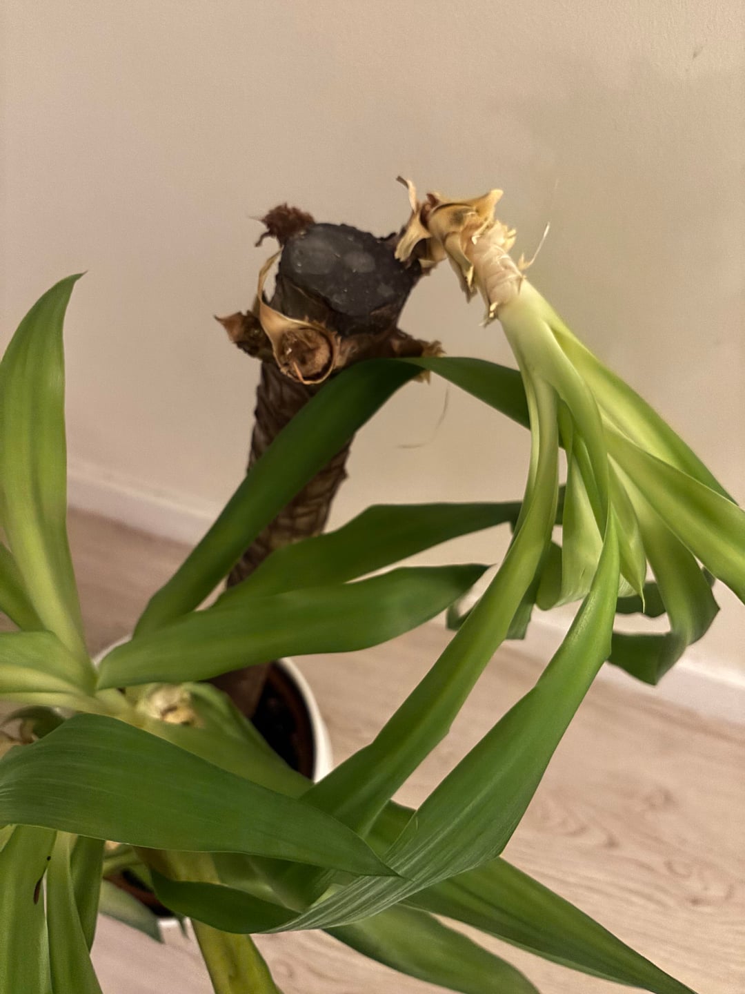 I did a bit of research but nothing has been conclusive so far. I bought it for my mom and have been taking care of it since (got it a year ago). the leaves have been dying and I removed the dead ones but underneath it’s all mushy??? (as shown in pictures)